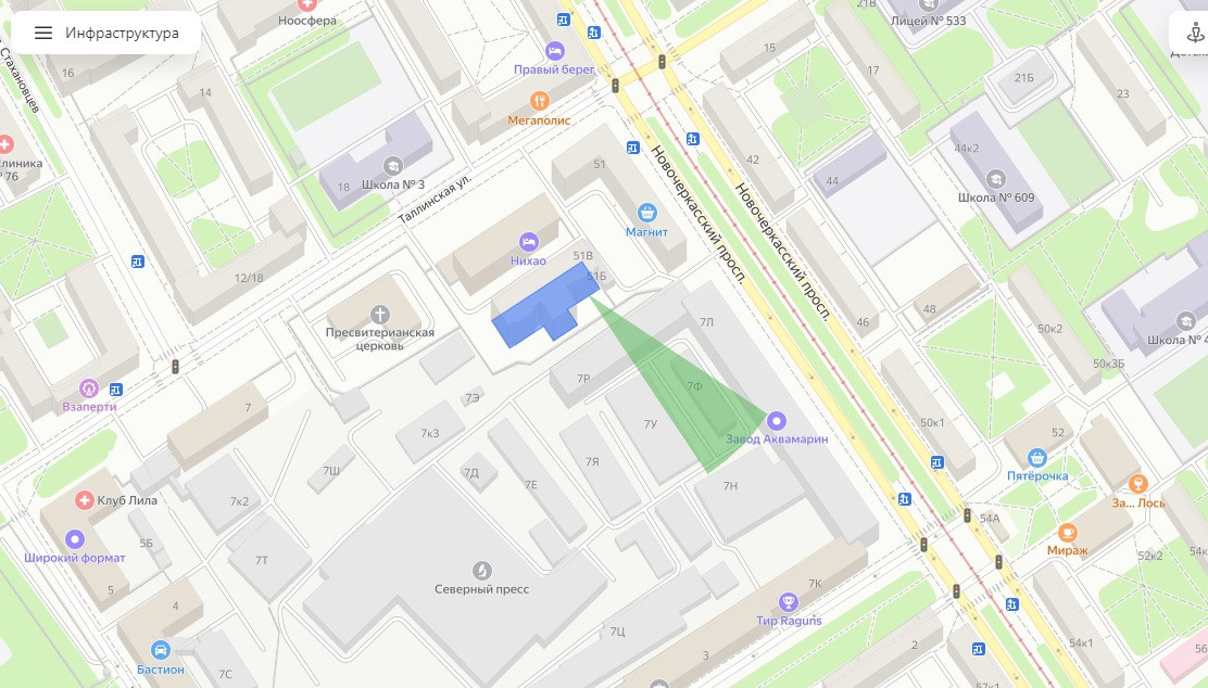 -пeшaя доступность до м.Hoвочеpкасская (7 минут пешком)