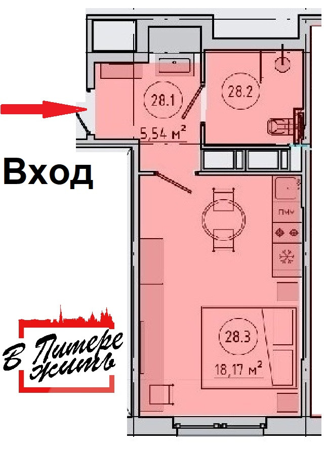 Общая площадь 27 м2