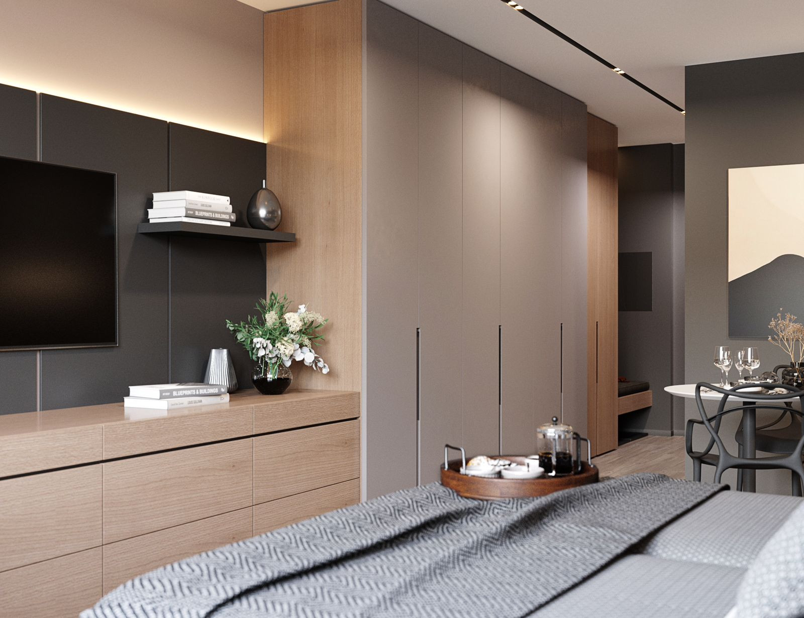 Сами юниты: на полу высококачественный ламинат 32 класса, потолок и стены оштукатурены и окрашены светлые и темные тона
