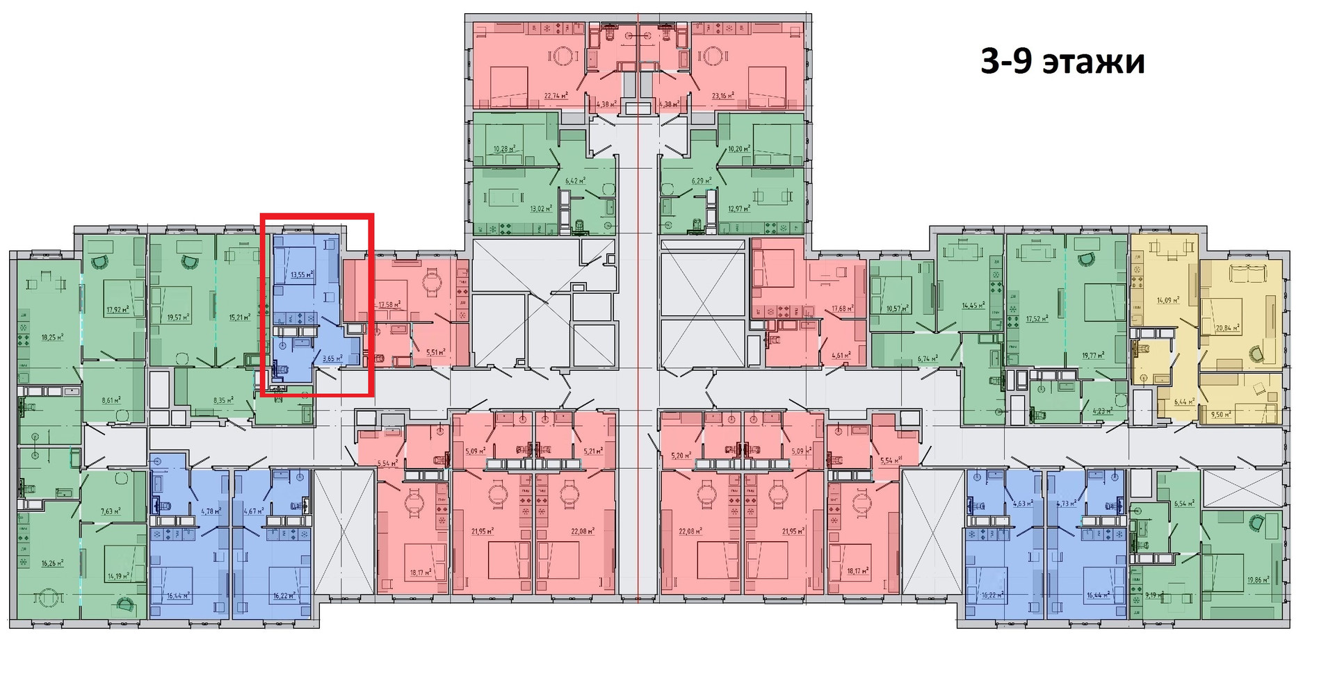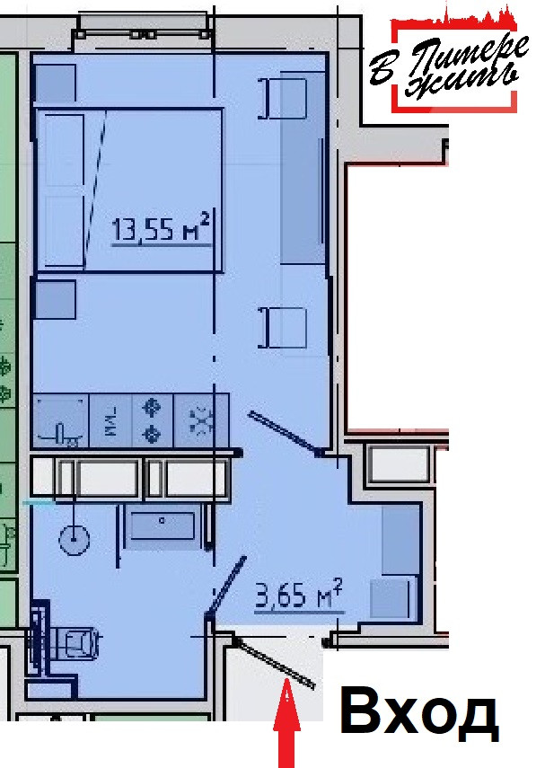 Жилая площадь 13.55 м2