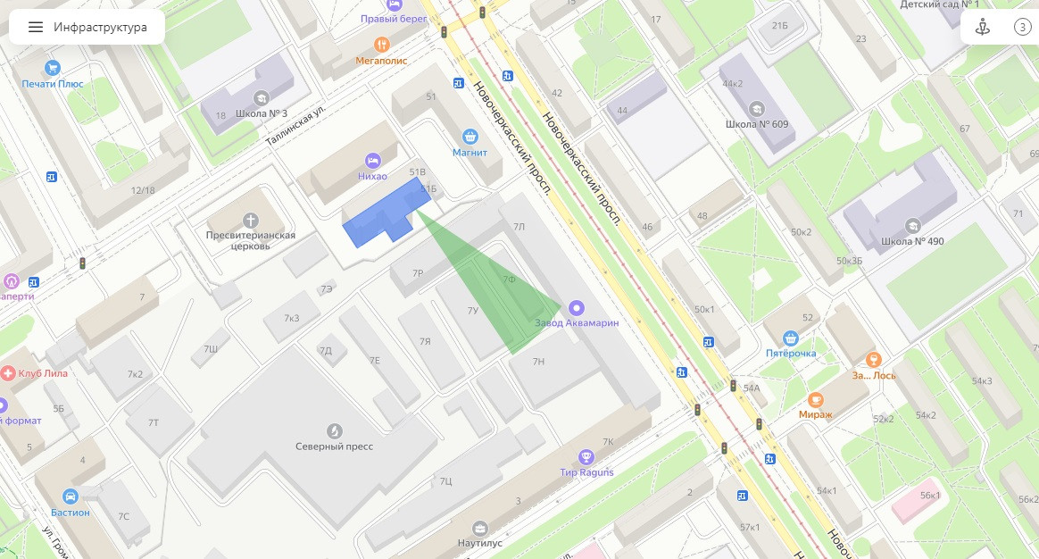 -пeшaя доступность до м.Hoвочеpкасская (7 минут пешком)