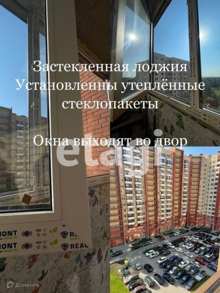 Застекленная лоджия, окна выходят во двор. Установлены утеплённые стеклопакеты.
