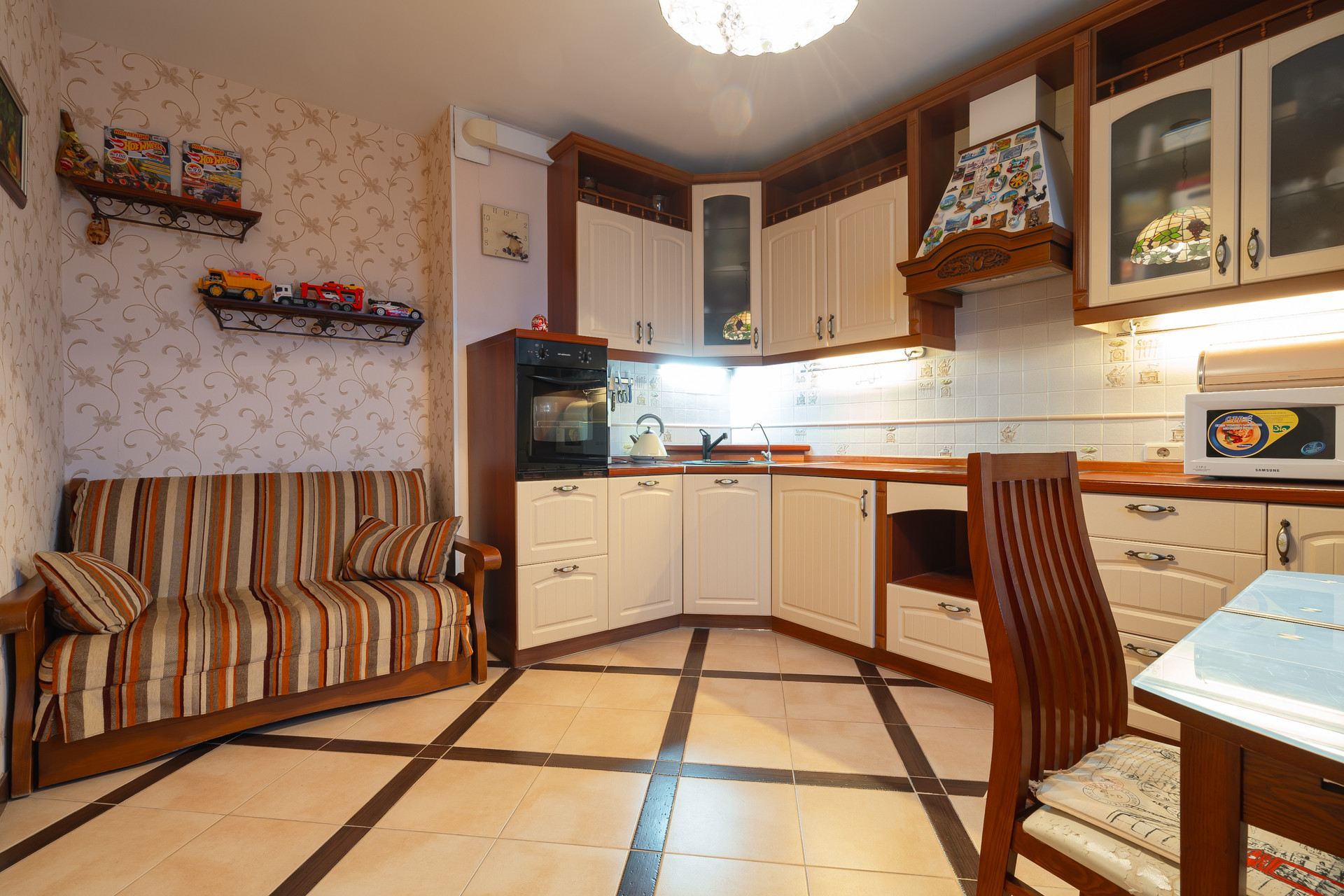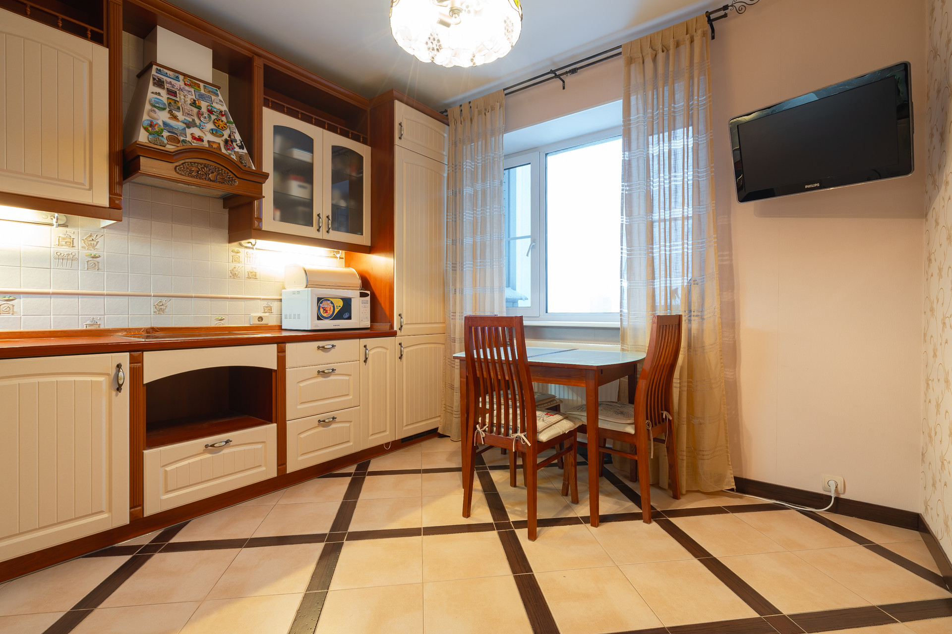 Квартира полностью обустроена для комфортной жизни. Новым владельцам достанется  кухонный гарнитур со встроенной качественной техникой фирмы Bosch и вся мебель - в квартире остается всё что увидите на фотографиях. В квартире проведен качественный ремонт, имеются теплые полы, застекленный балкон.  При живом просмотре квартира вызывает приятные чувства и ощущение комфорта.