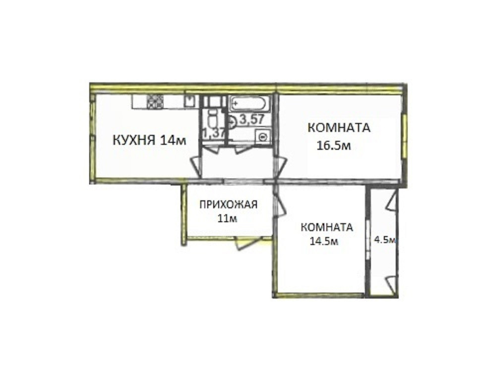 Площадь кухни 14 м2