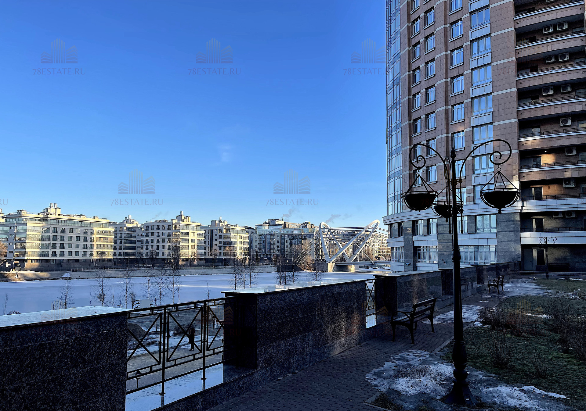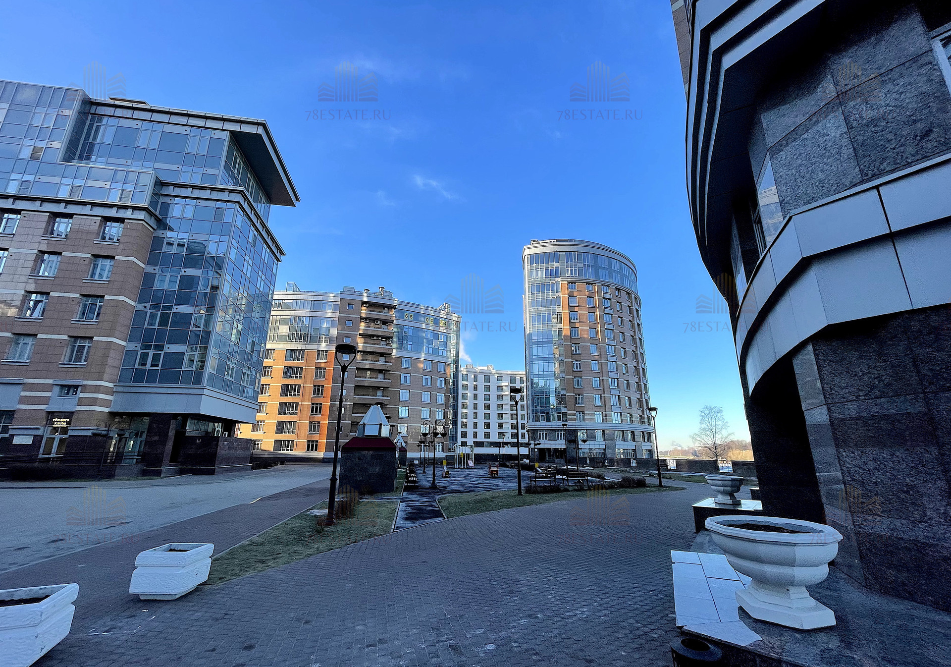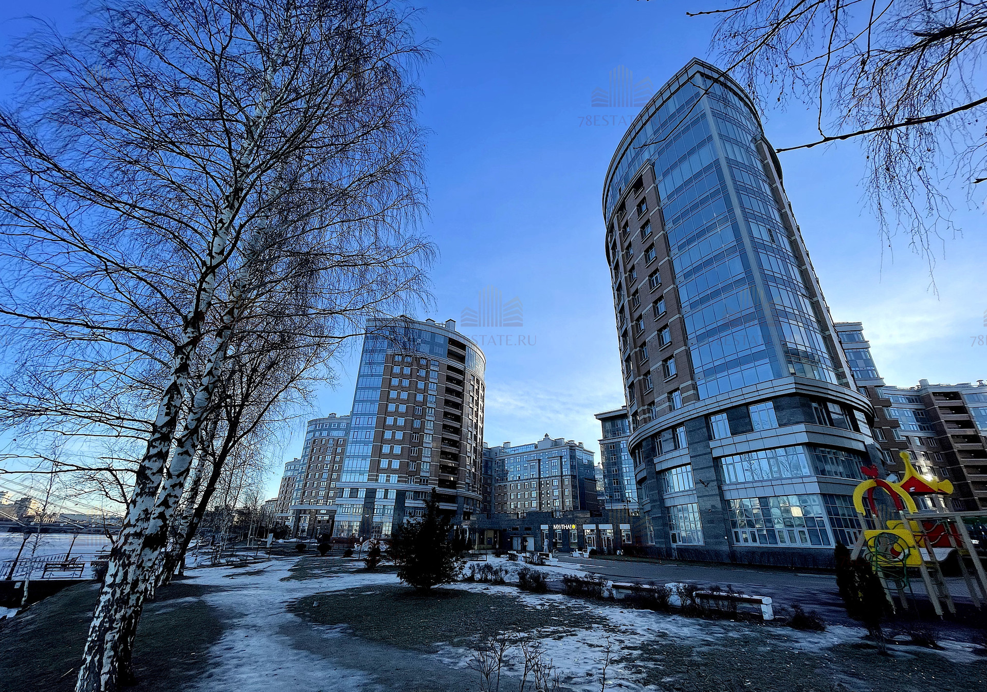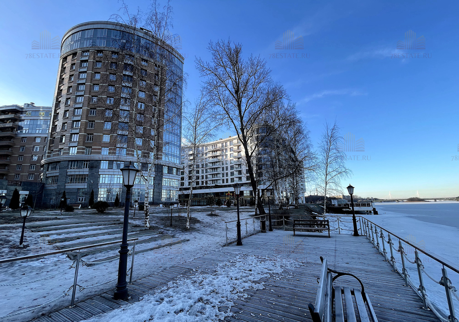Большая закрытая охраняемая территория с детскими площадками, собственной благоустроенной набережной и всей необходимой коммерцией. Прямо через реку, на Крестовском острове, расположен открытый каток «Динамо».