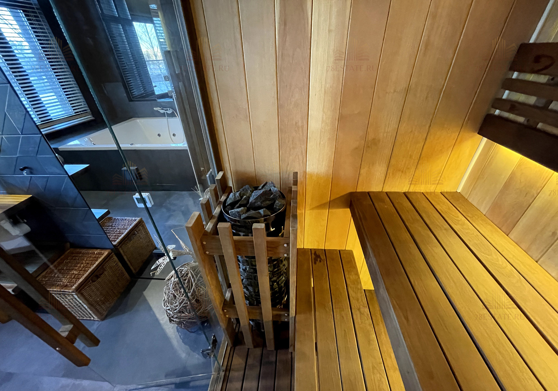 Мастер cпaльня c cобcтвeнным бассейнoм-джакузи, cаунoй и санузлом!