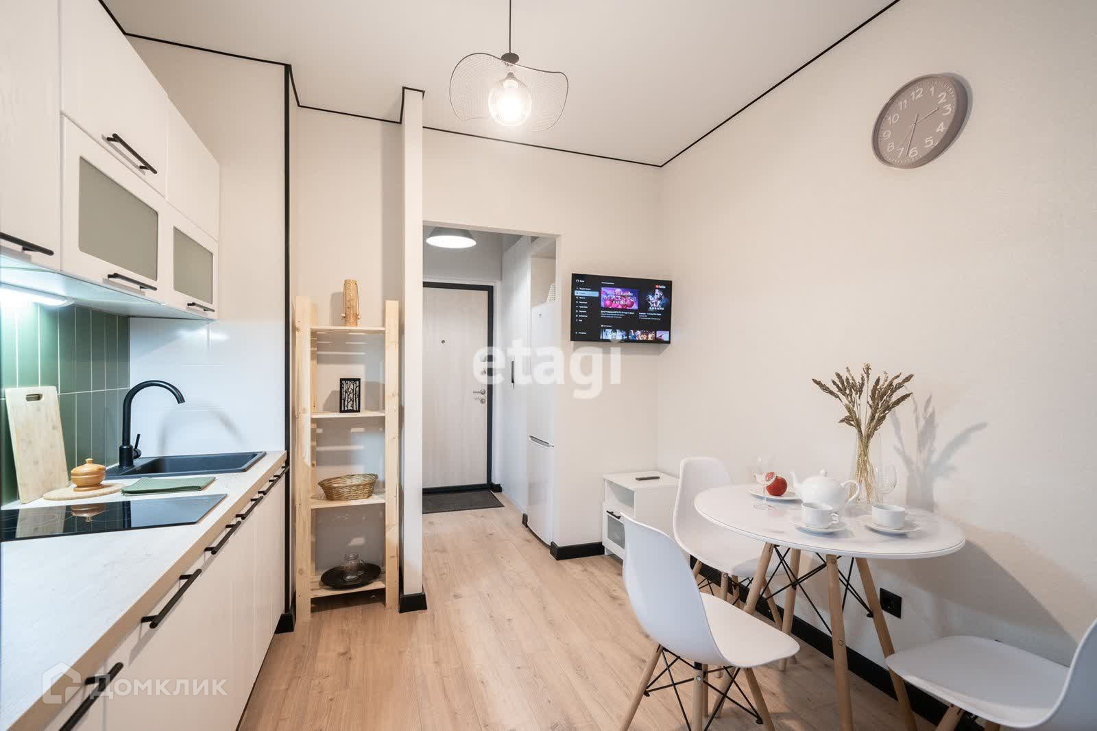 Зона кухни-гостиной укомплектована всей необходимой премиальной техникой и мебелью к радости будущих владельцев.