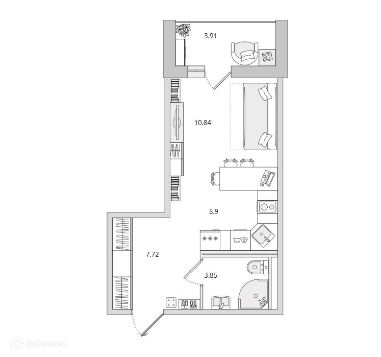 Балкон, лоджия 1 лоджия