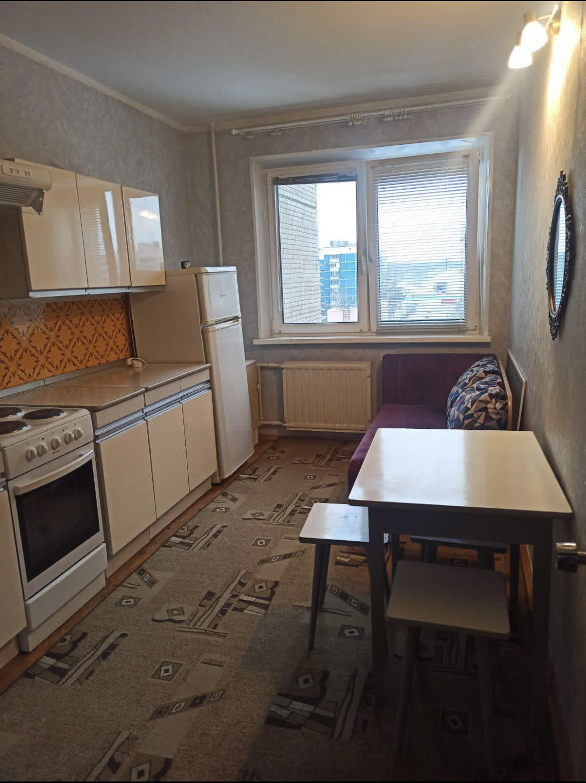 Квартира в хорошем состоянии,лоджия застеклена.Мебель,техника остается новому покупателю.Из окон открывается замечательный вид на благоустроенный двор с детской площадкой и на придомовую территорию, где есть наземная парковка для машин.
