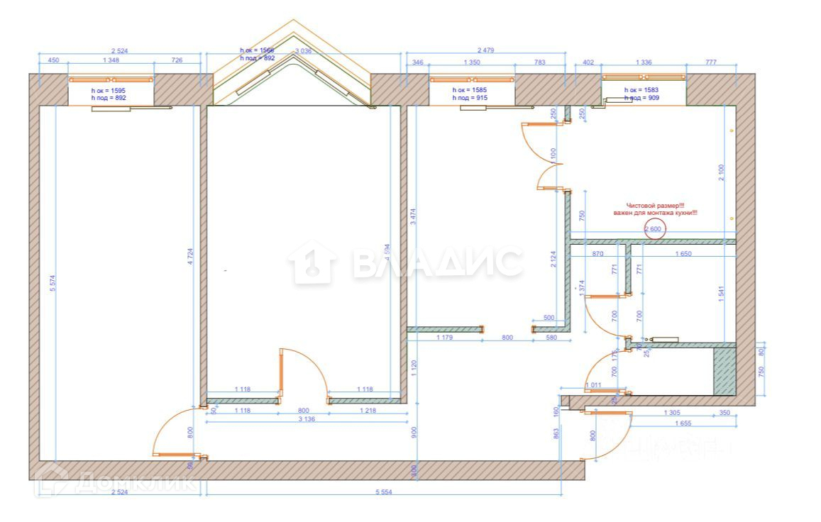 Общая площадь 56.3 м2