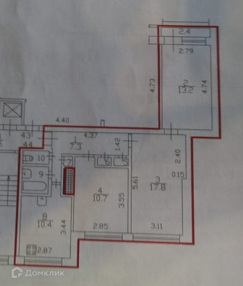 Жилая площадь 41.7 м2