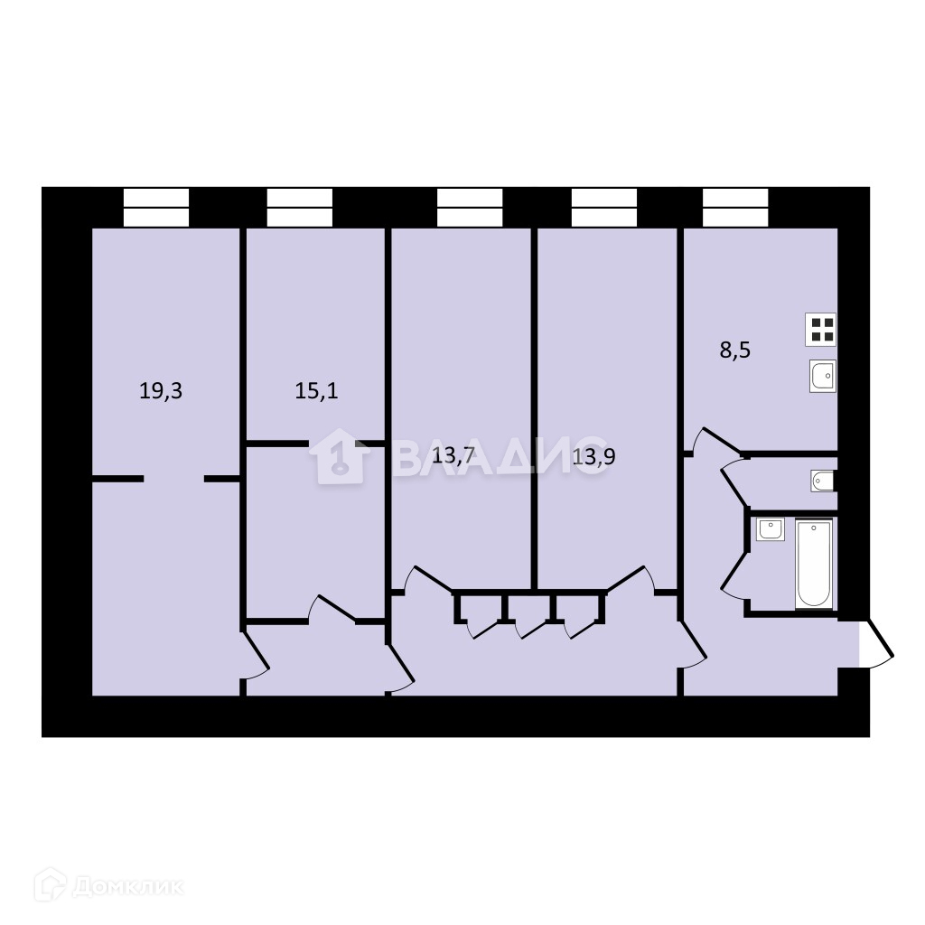 Жилая площадь 61 м2