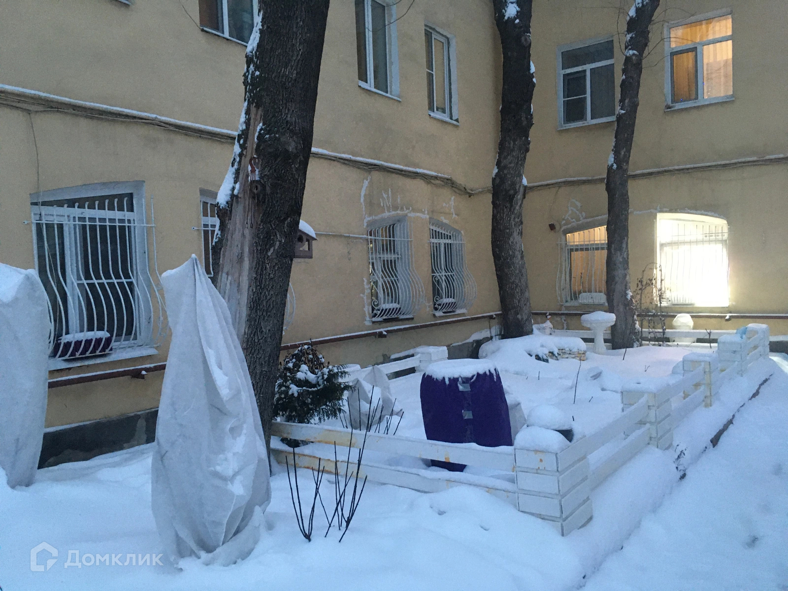 Окна выходят в тихий двор.