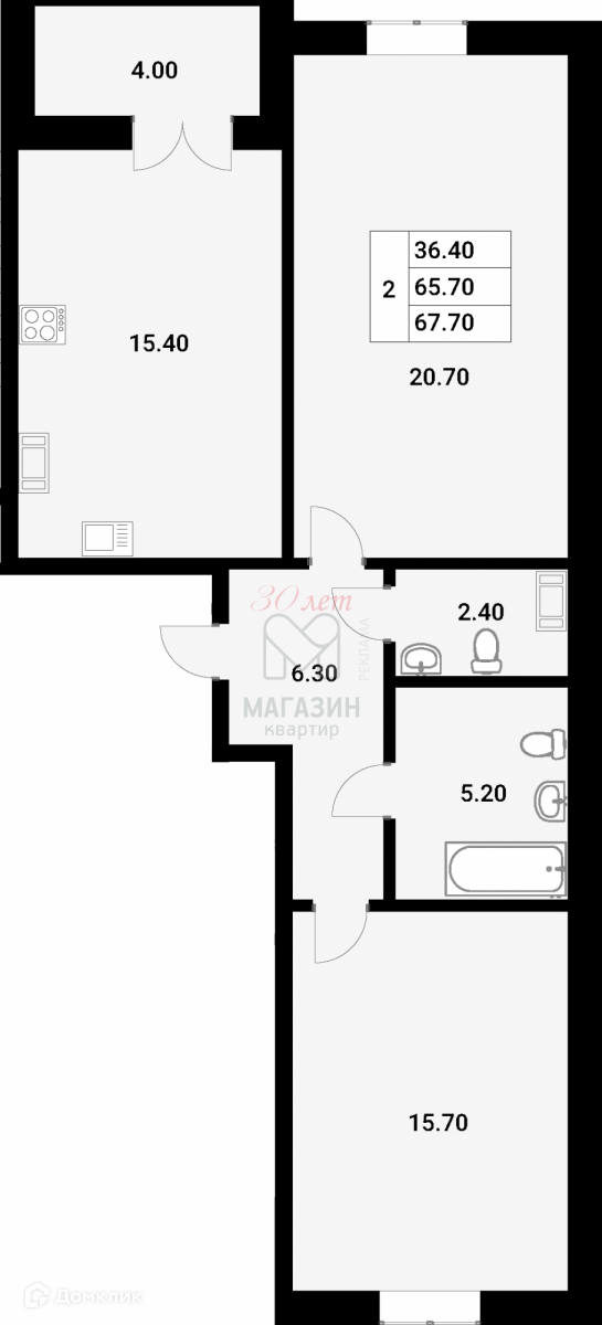 - Жилая площадь - 36,4 м2