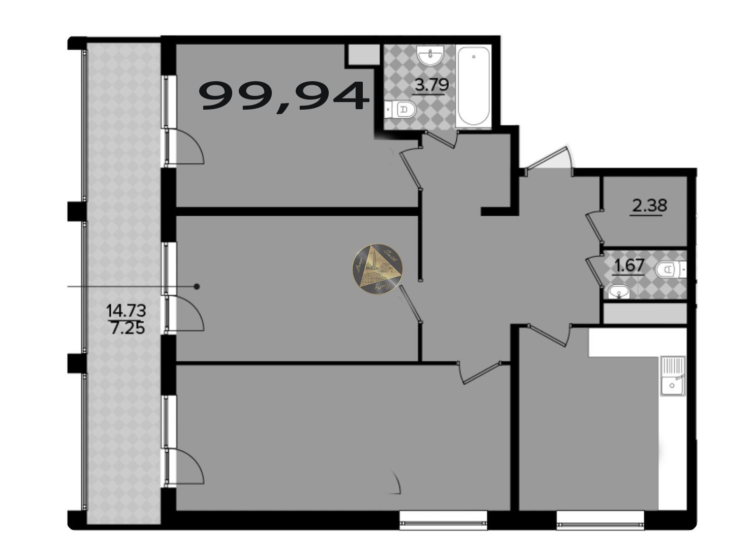 - Общая площадь квартиры 99,94 м2.