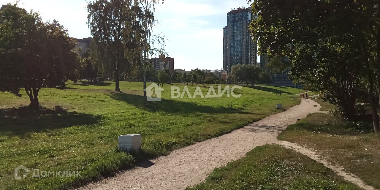 -Напротив дома ухоженный парк на берегу Невы;
