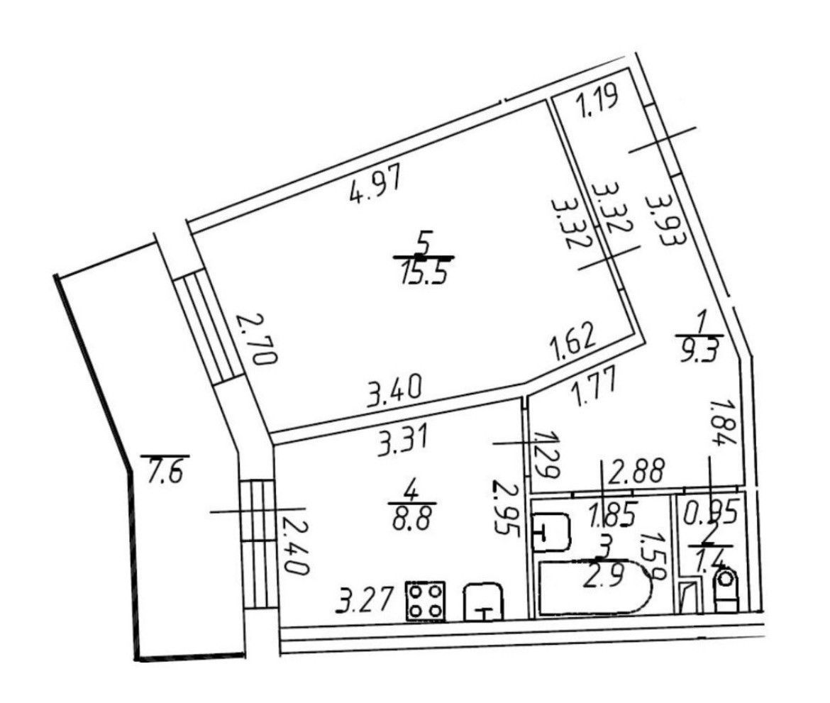 Балкон, лоджия 1 балкон