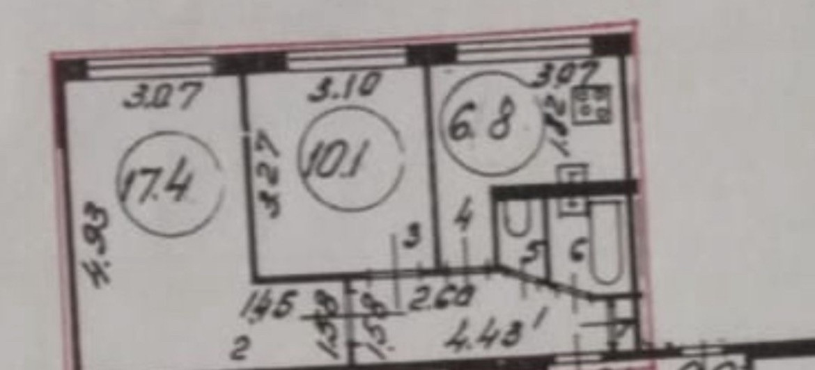 Общая площадь 44.2 м2