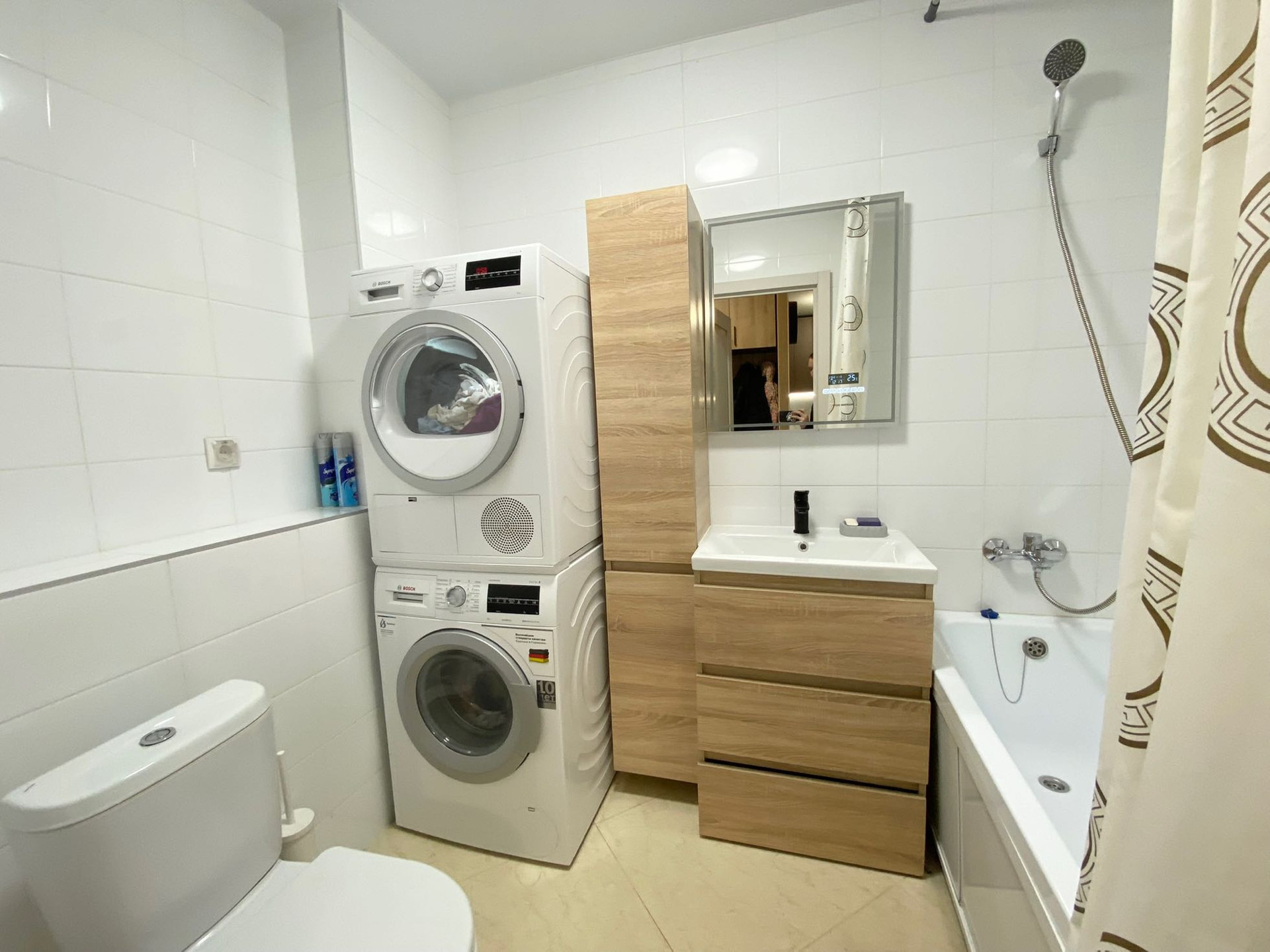 - хороший и качественный ремонт в отличие от отделки застройщика: в прихожей, гостиной и ванной дорогая напольная кафельная плитка, теплый пол, в спальне новый хороший ламинат, новые межкомнатные двери (наличники будут установлены в ближайшее время), в ванной качественная функциональная мебель и сантехника, зеркало с несколькими режимами подсветки,