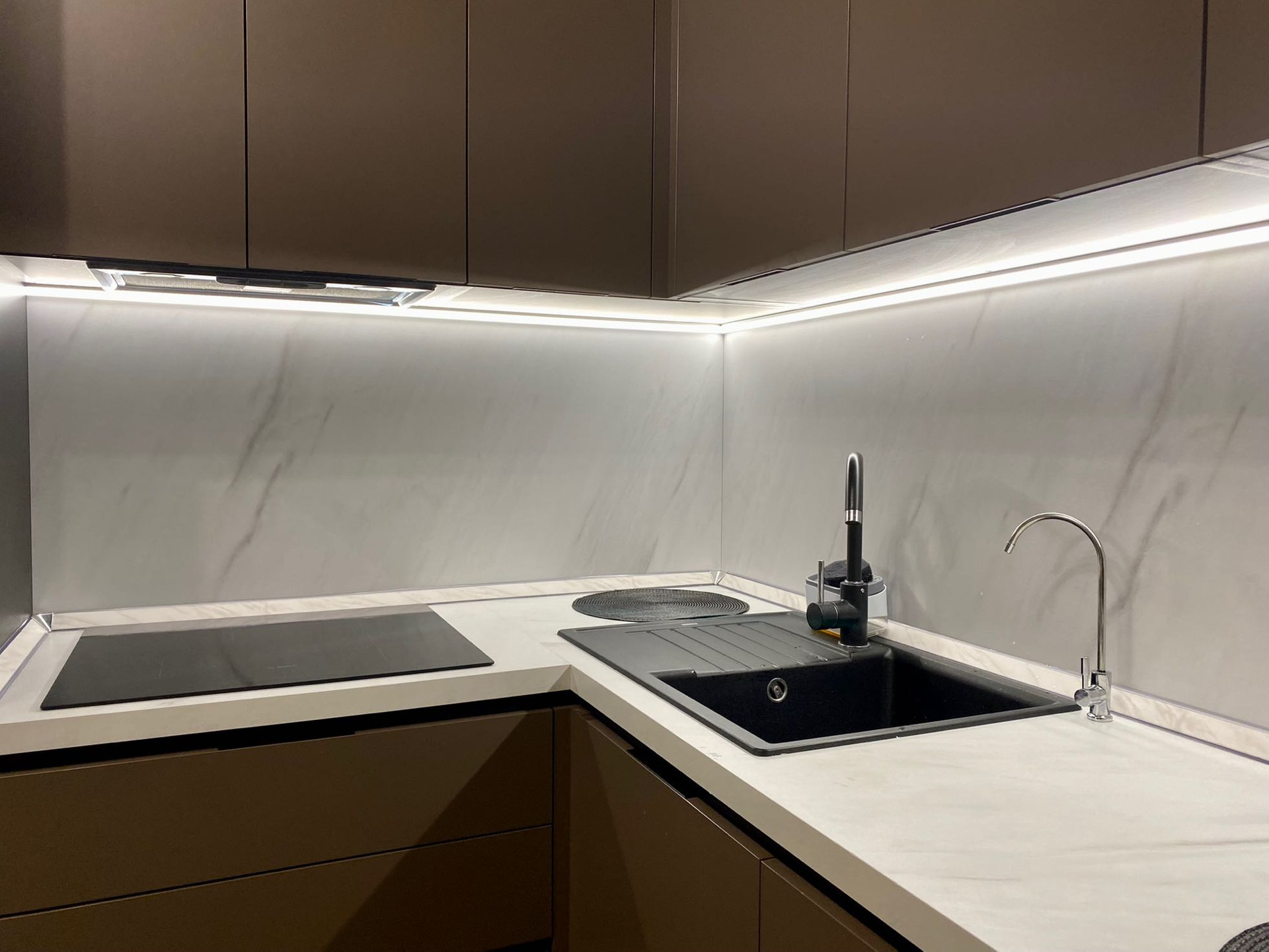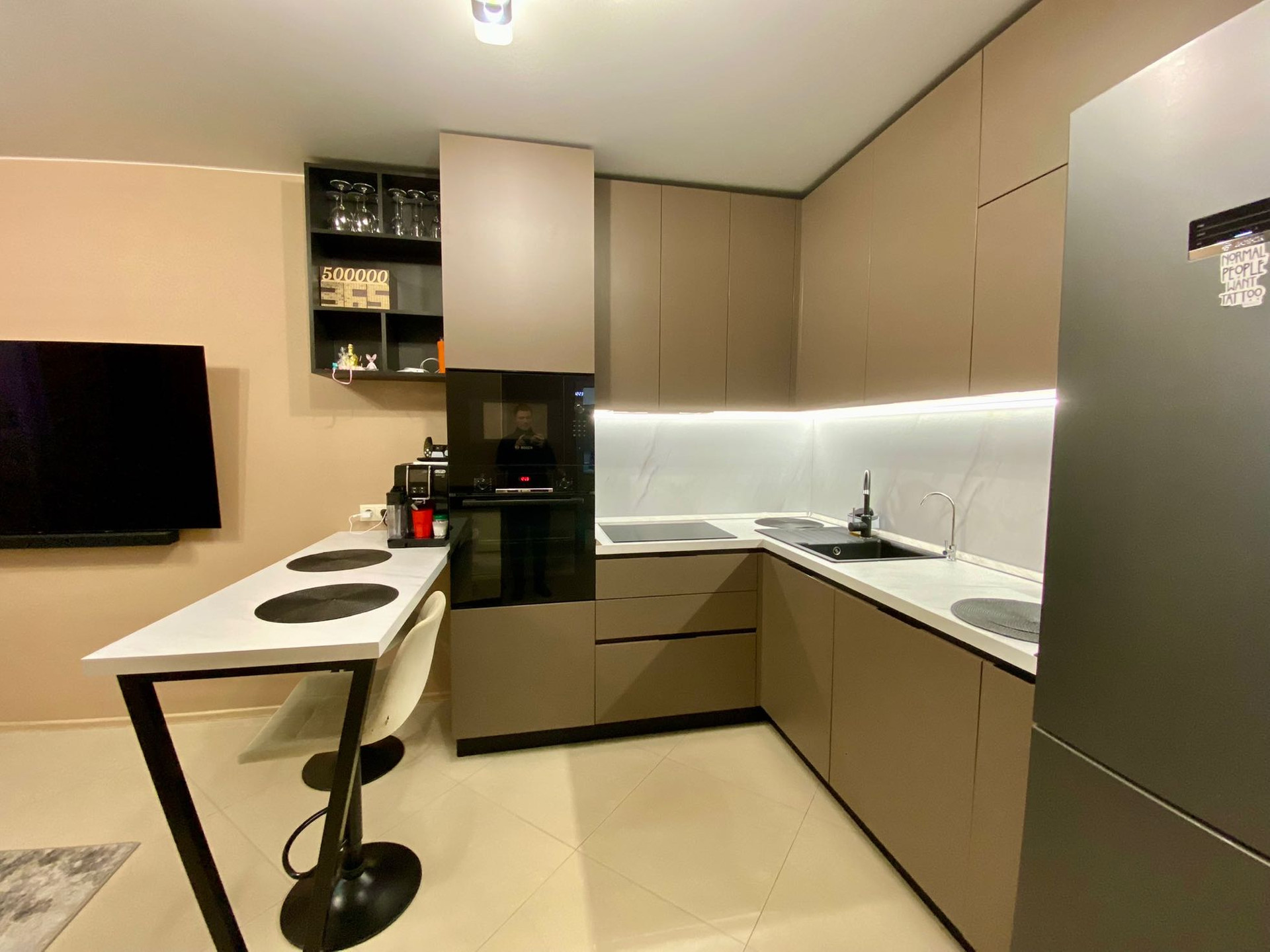 - дорогая стильная кухня с подсветкой, покупалась в салоне Стильные кухни, еще 1 год на гарантии,