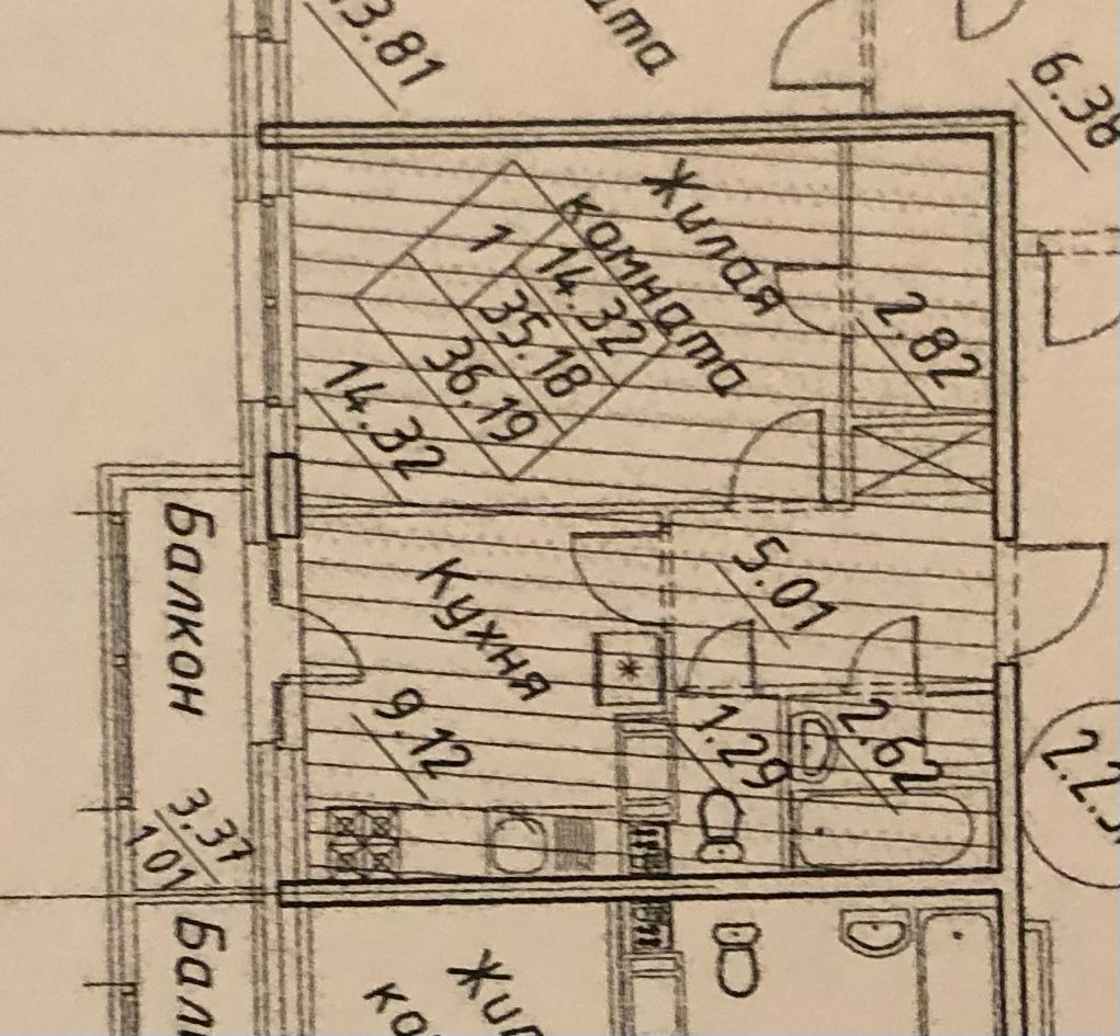 Общая площадь 36.19 м2