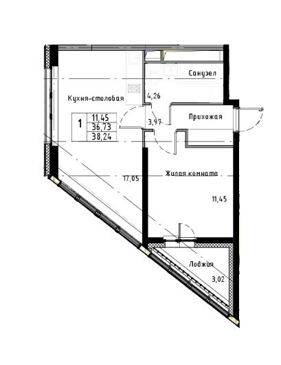 Общая площадь 38 м2