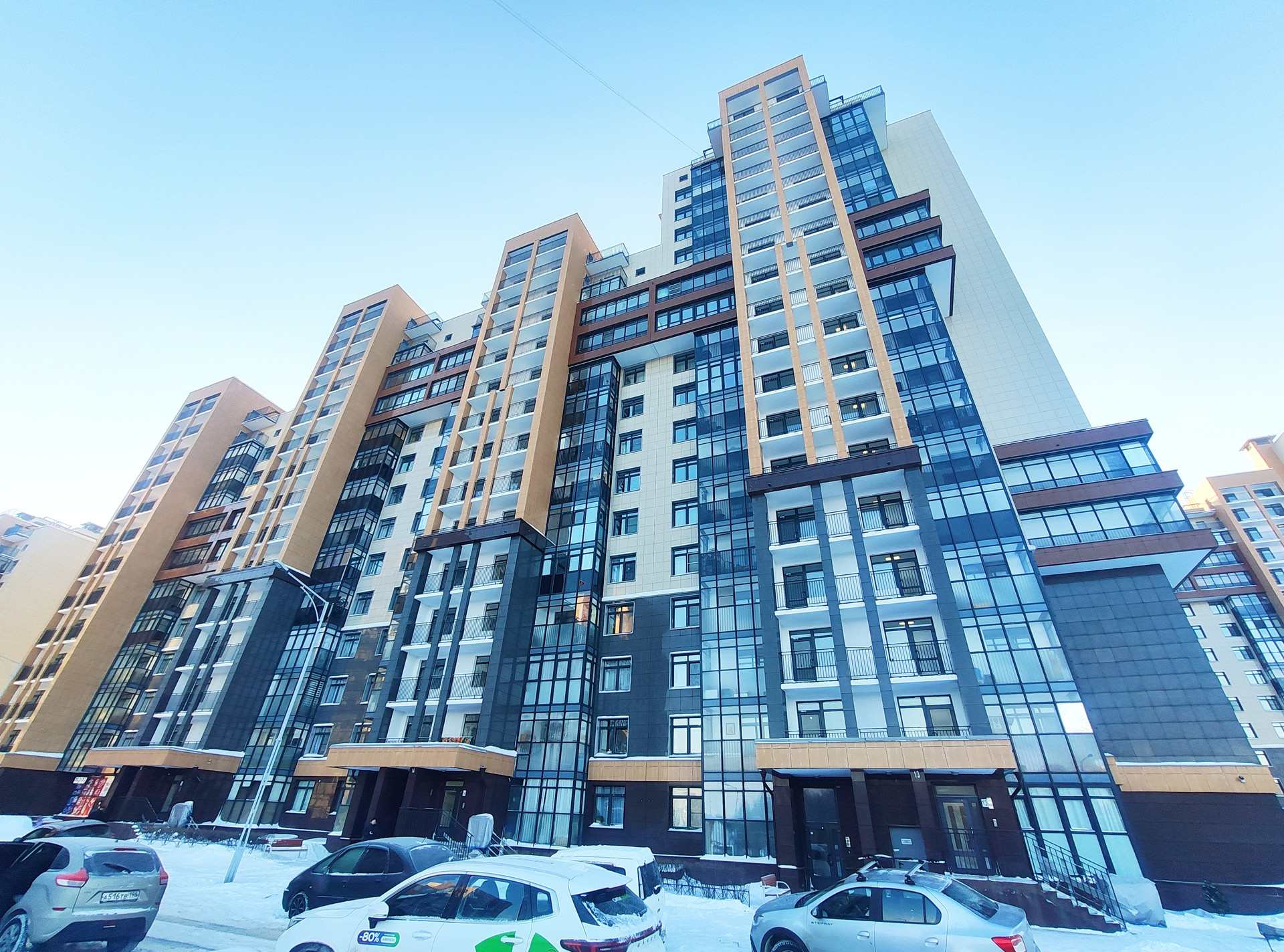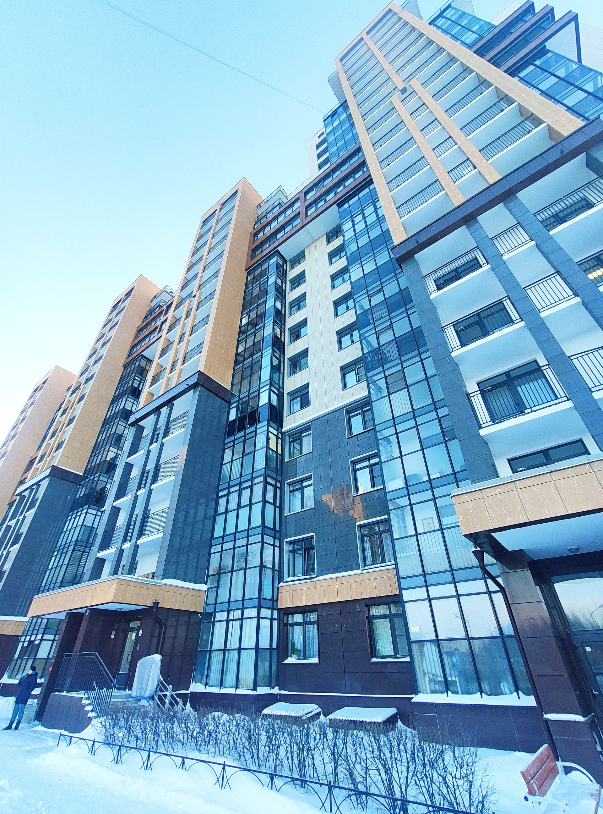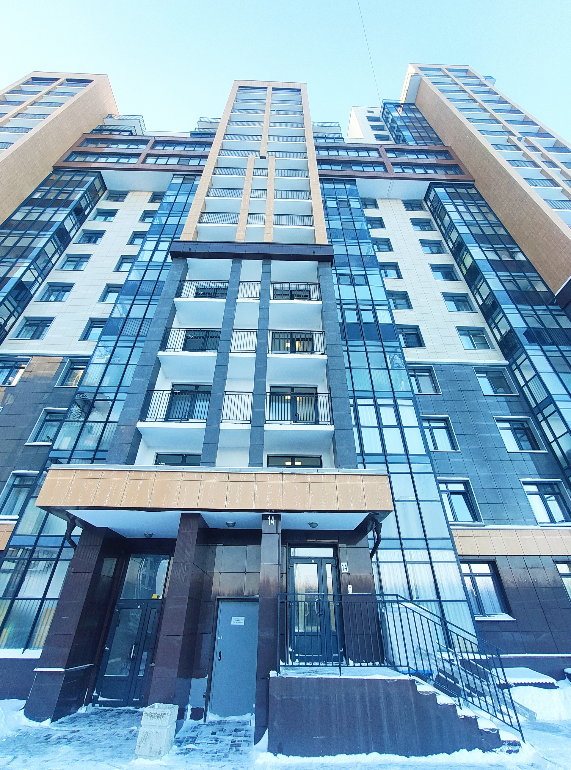 Наш современный 17-этажный кирпично-монолитный дом 2016 г.п. с чистыми парадными, безопасными лифтами и круглосуточным видео-наблюдением.
