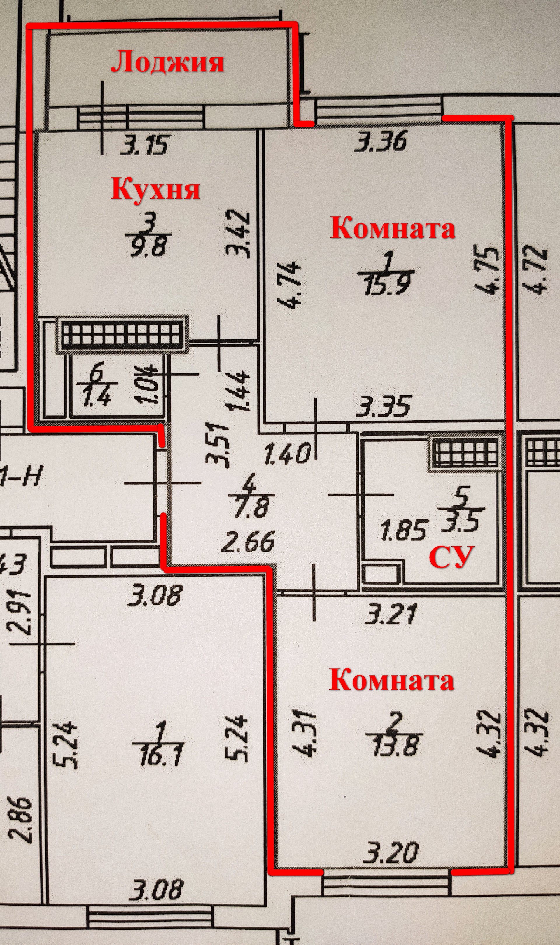 две изолированные комнаты прямоугольно-квадратной формы 15.9+13.8 кв.м.,