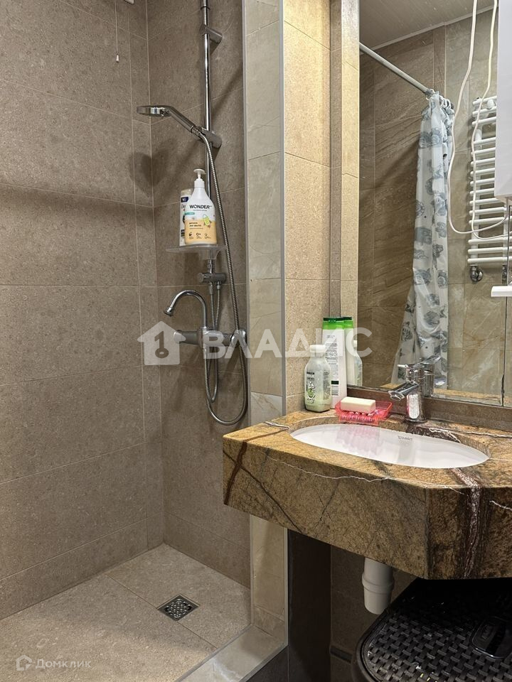 - В санузле установлена душевая, отделка санузла комбинированная керамогранит - мрамор.