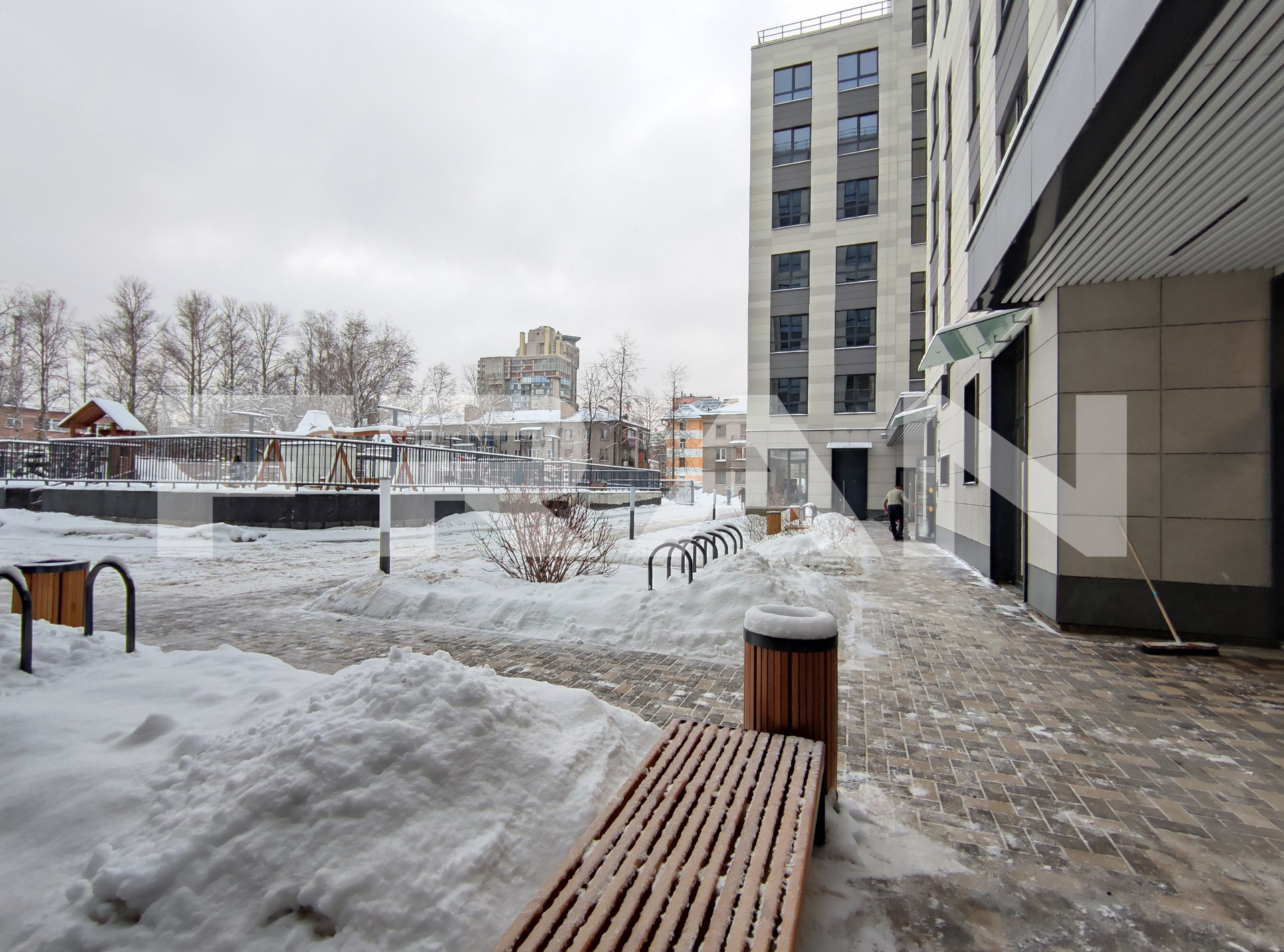• На первом этаже расположены коммерческие помещения и детский сад