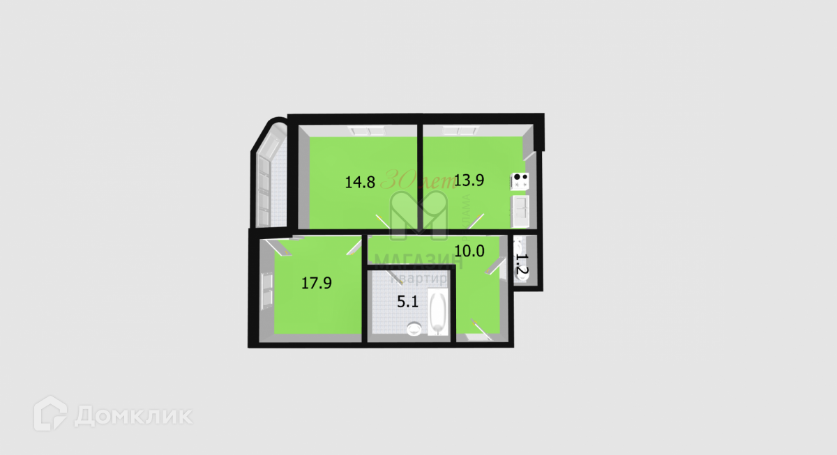 Общая площадь 63.1 м2