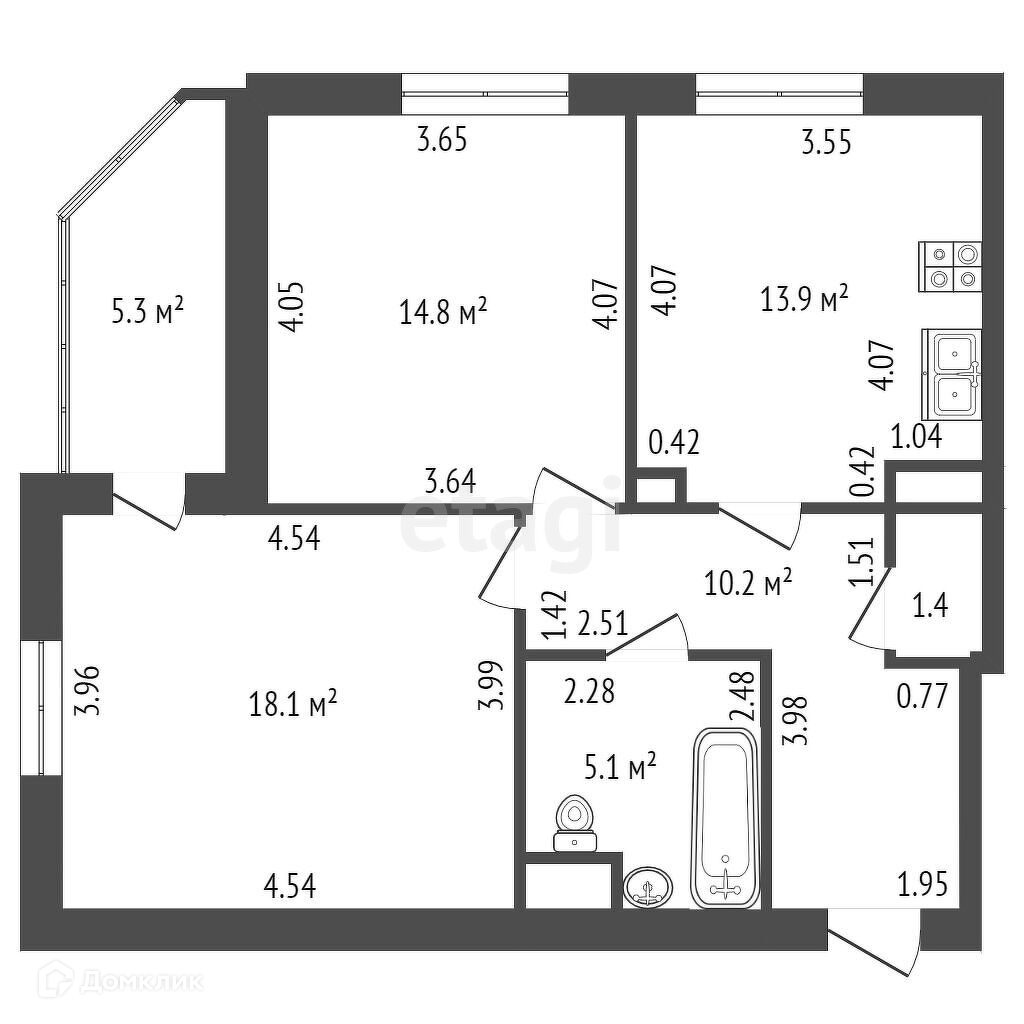 Общая площадь 63.1 м2
