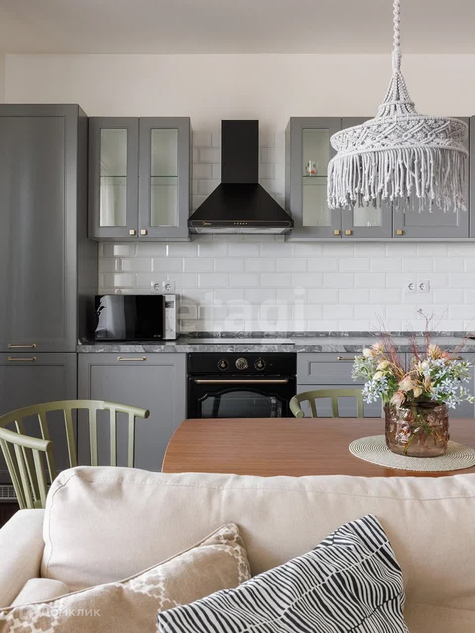 Квартира с большой кухней-гостиной полностью укомплектованная мебелью и техникой : холодильник, индукционная варочная панель , духовой шкаф , посудомоечная машина , кондиционер , телевизор , кофемашина .