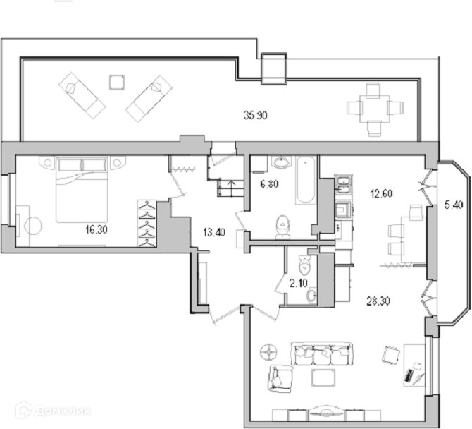 Квартира имеет просторную площадь и продуманную планировку, что позволит вам воплотить в жизнь самые смелые дизайнерские идеи. Особенностью данной квартиры является наличие собственной террасы площадью 35,9 м2, что позволит организовать отличное место для отдыха с видом на город.