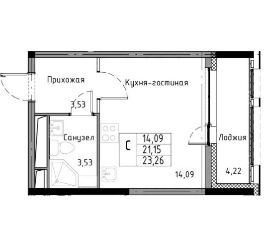 Общая площадь 23.26 м2