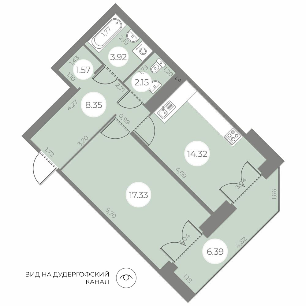 Общая площадь 47.64 м2