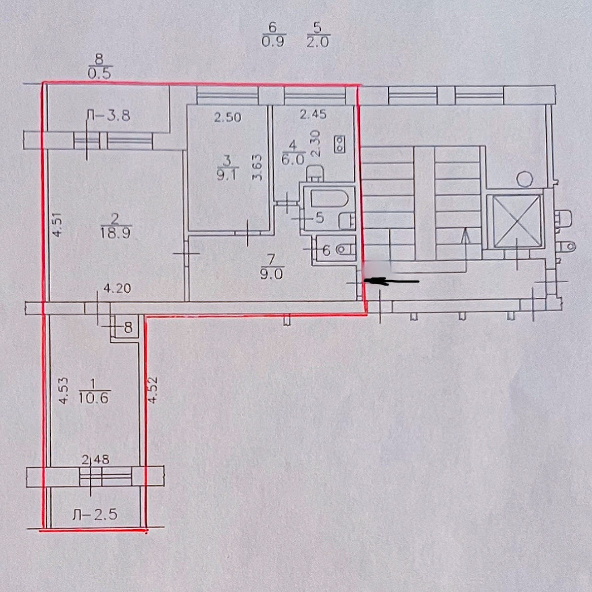 Жилая площадь 39.2 м2