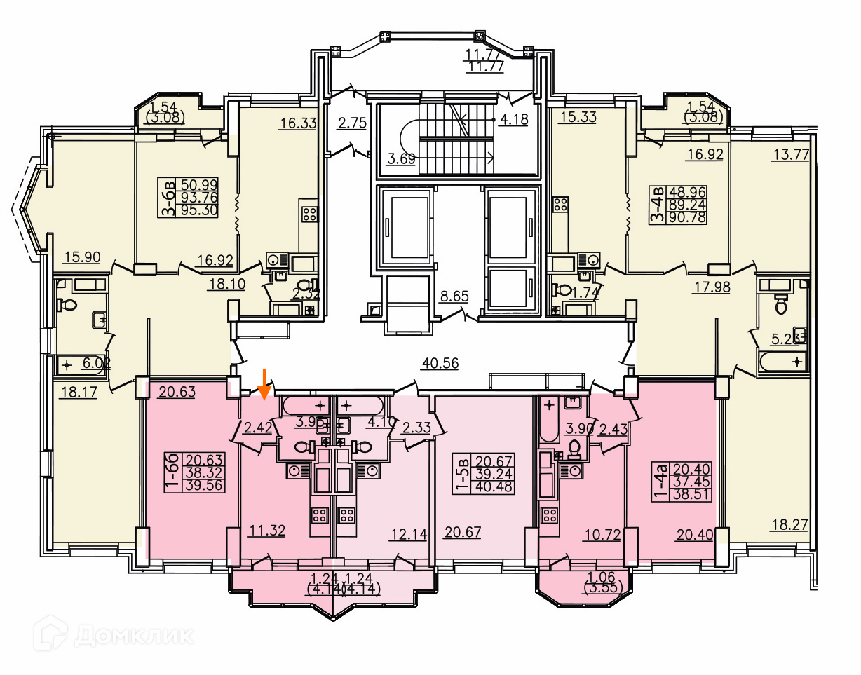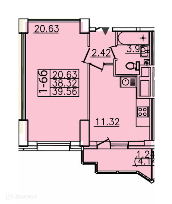 Общая площадь 39.56 м2