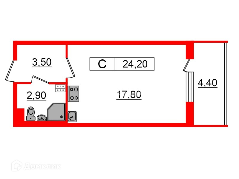 Общая площадь 24.2 м2