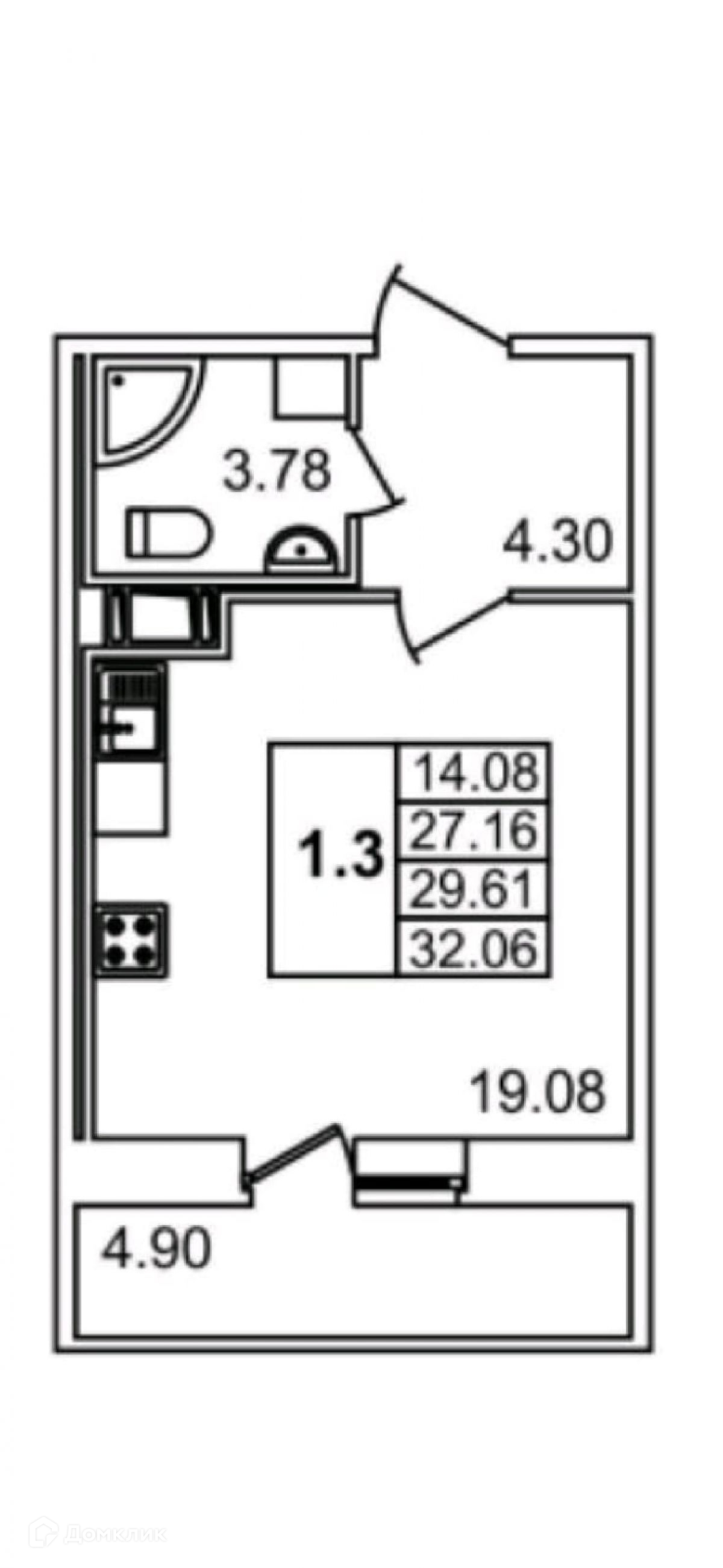 Общая площадь 27.2 м2