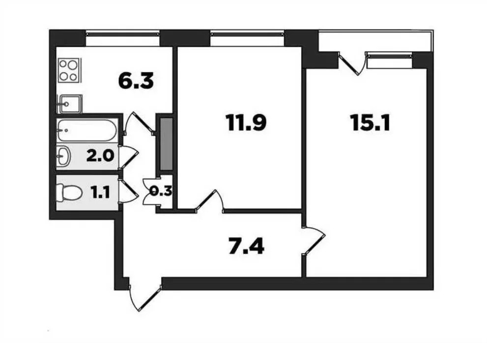 Общая площадь 44.2 м2