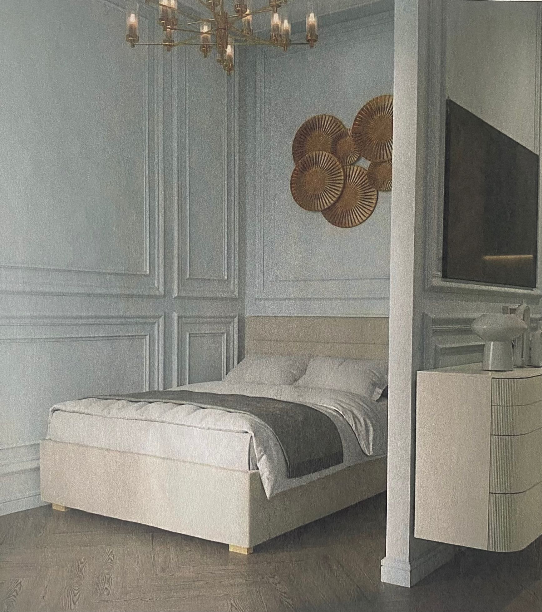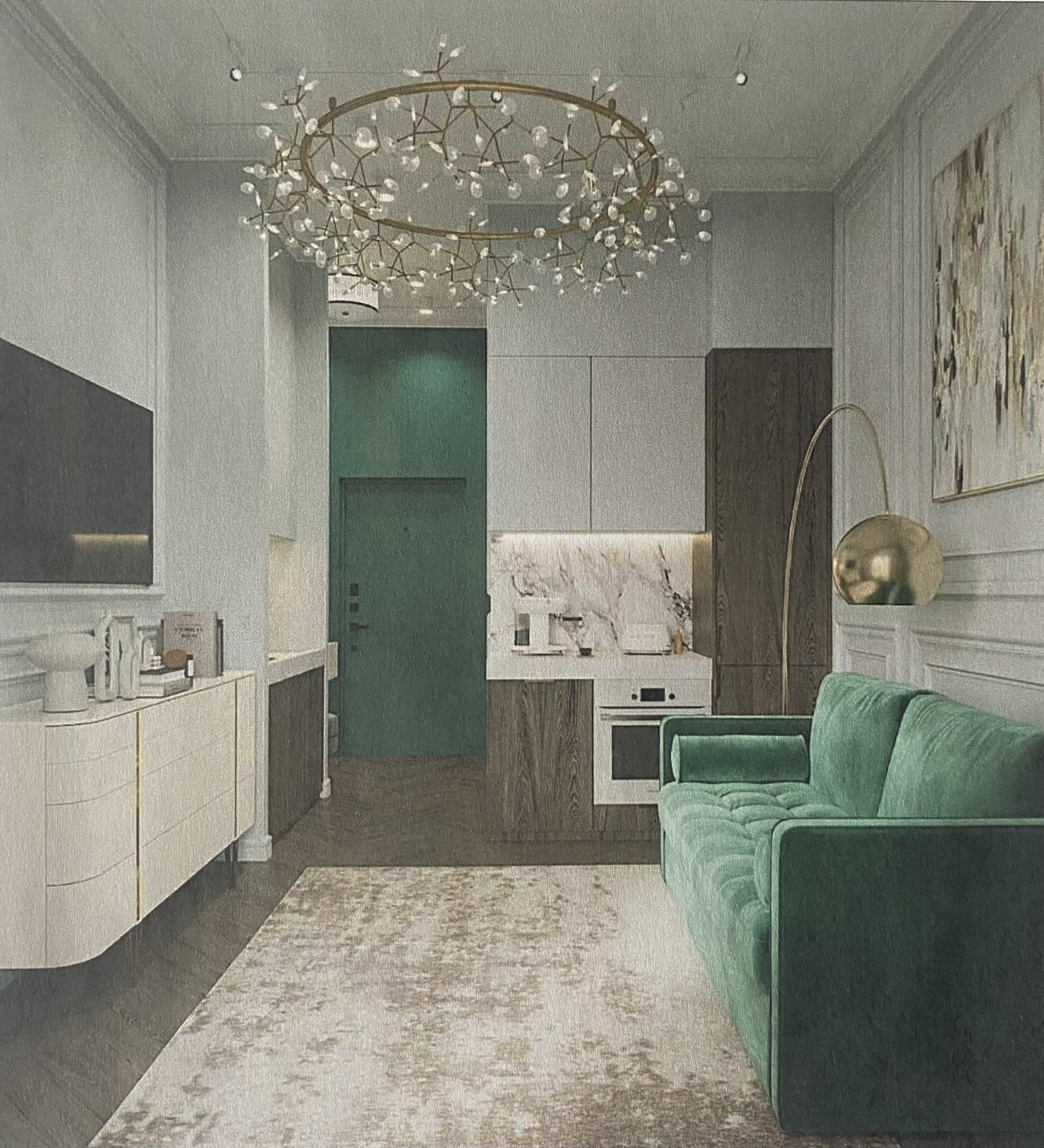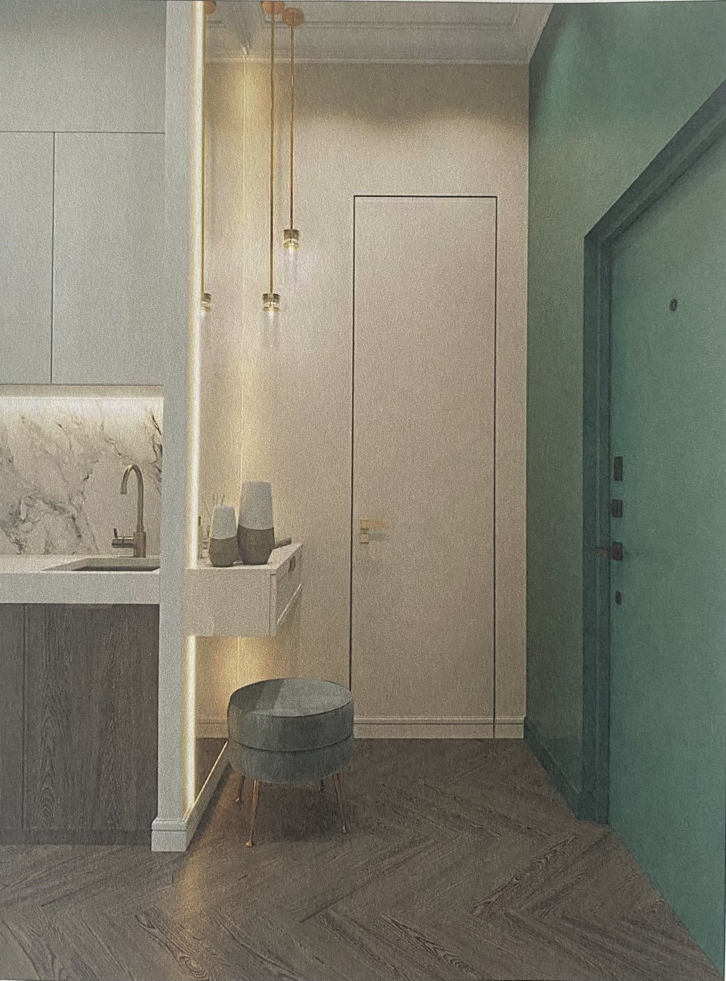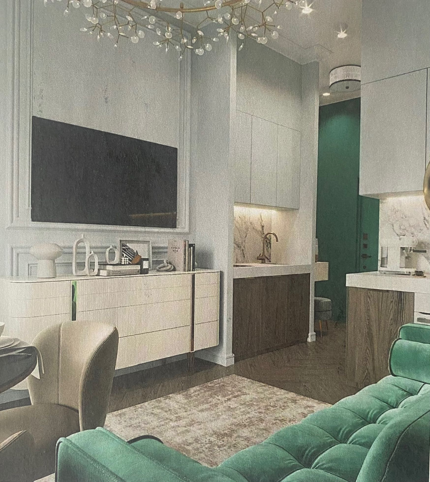 В квартире произведен качественный добротный дизайнерский ремонт. Общая площадь 33 кв.м., кухня-гостиная 15 кв.м., спальня 7,25 ка.м., больная гардеробная 3 кв.м., просторный санузел 5 кв.м., прихожая 3 кв.м.