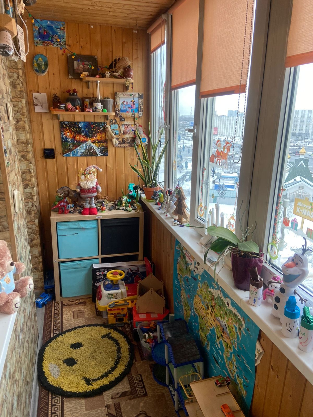 - Утеплённый полностью балкон оборудован под детскую