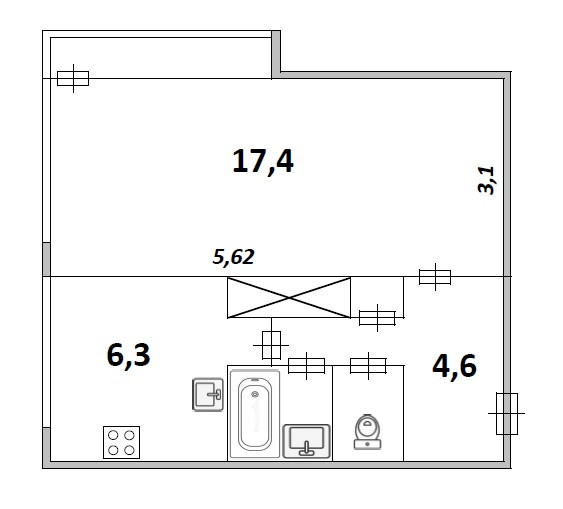 Жилая площадь 17.4 м2