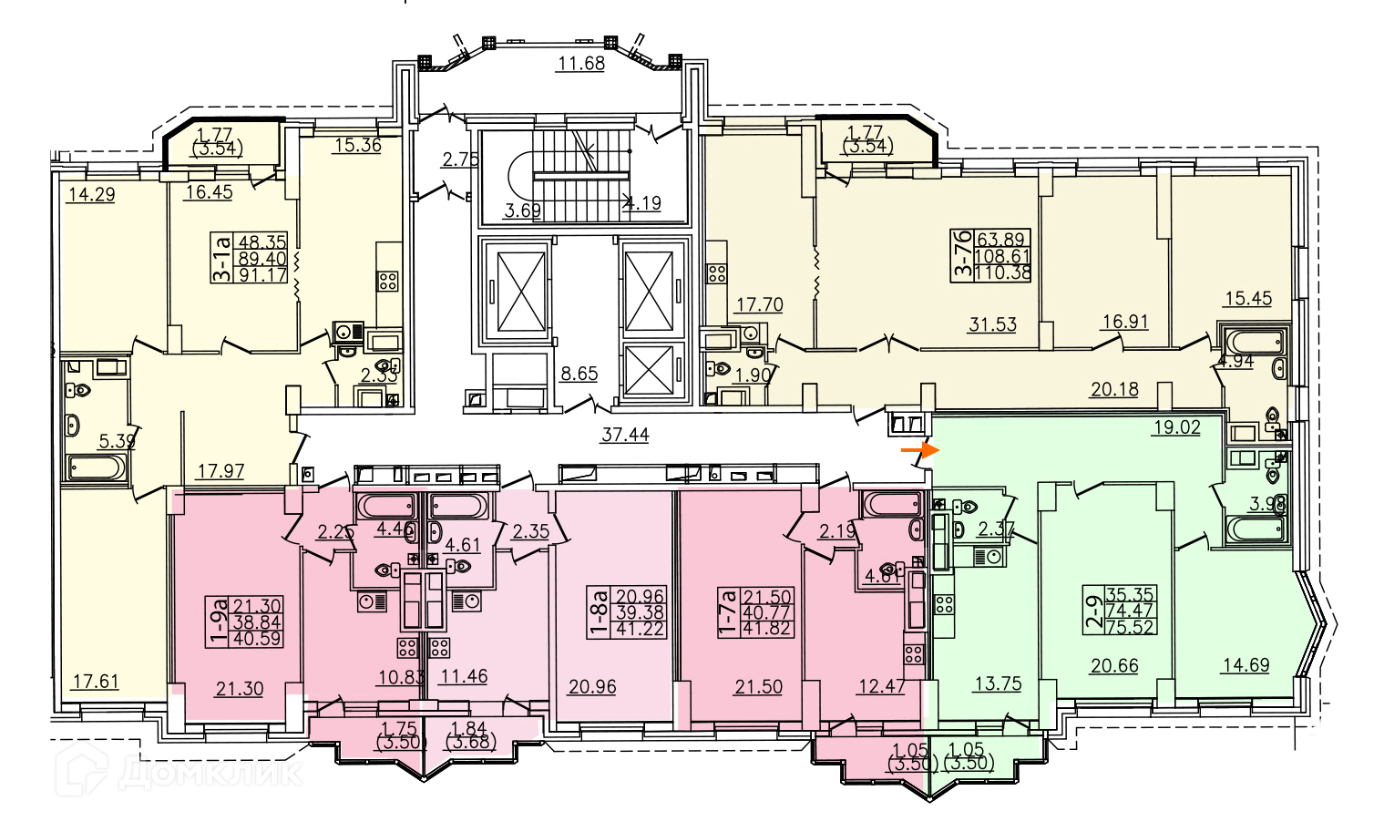 Общая площадь 75.52 м2