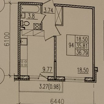 Общая площадь 36.79 м2