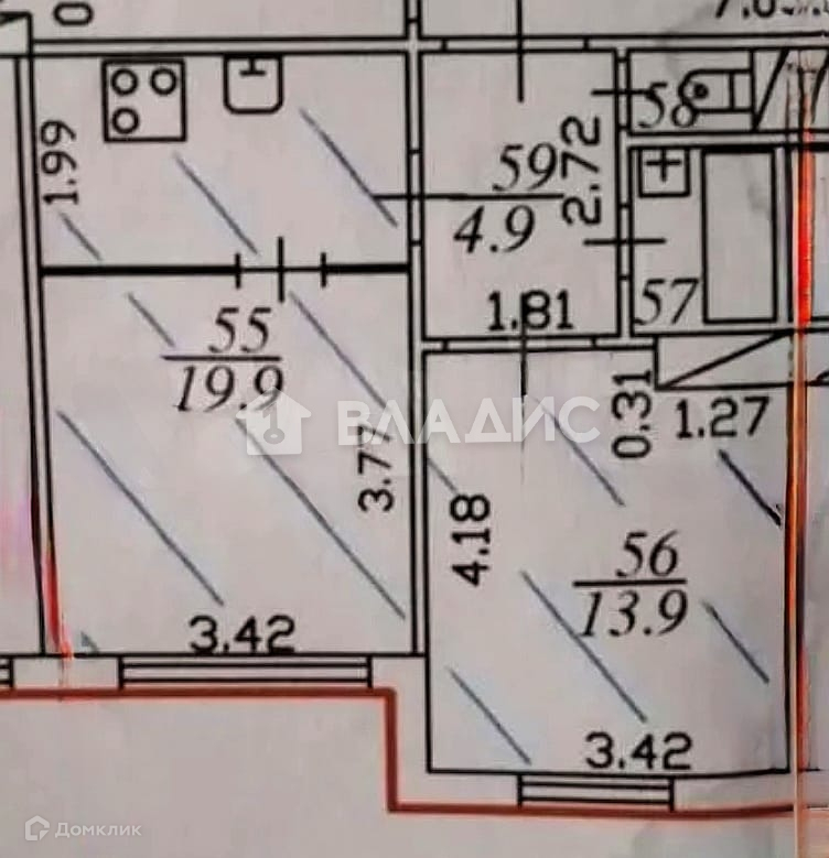 Общая площадь 43 м2