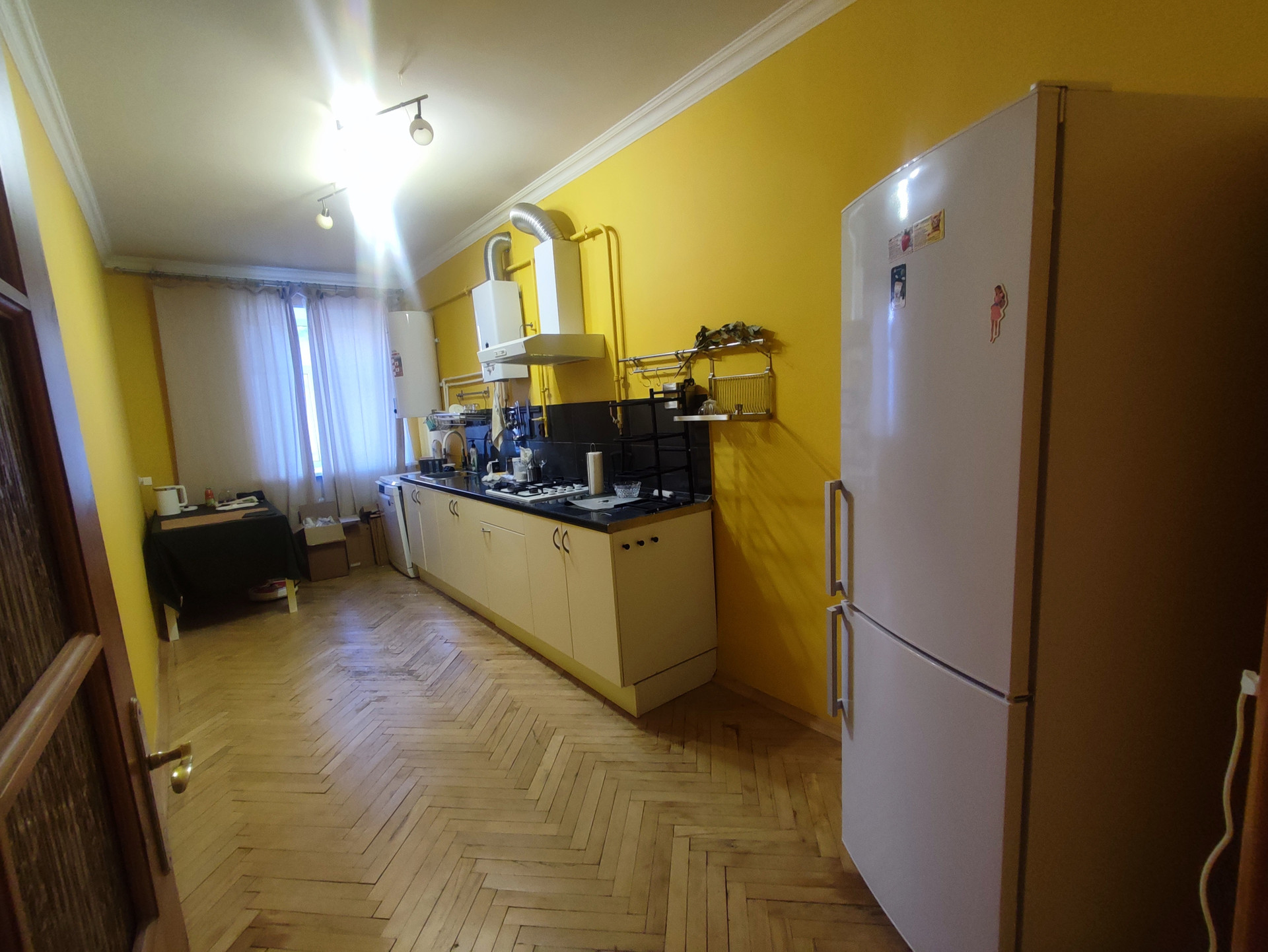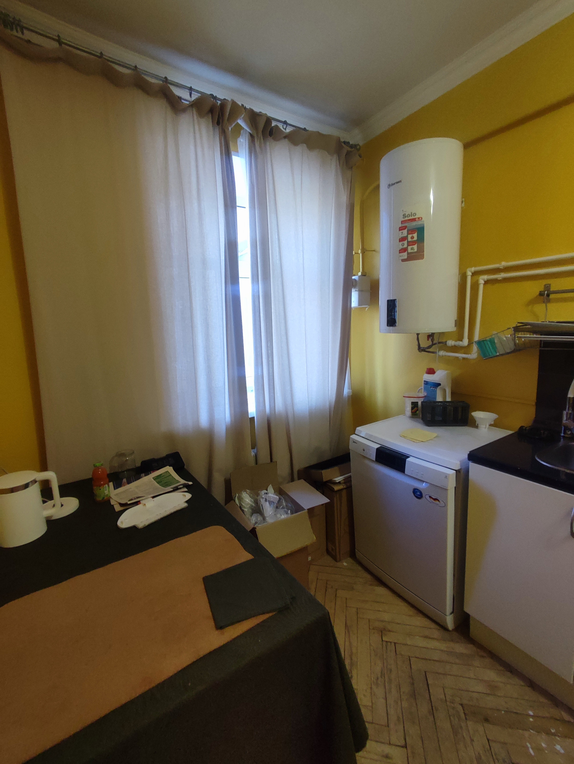 В квартире сделан качественных косметический ремонт- выровнены стены, заменены трубы, электрика, положена плитка, отциклеван паркет. Окна - стеклопакеты. Над квартирой расположен полноценный технический этаж. Дом после капитального ремонта (железобетонные перекрытия установлены).