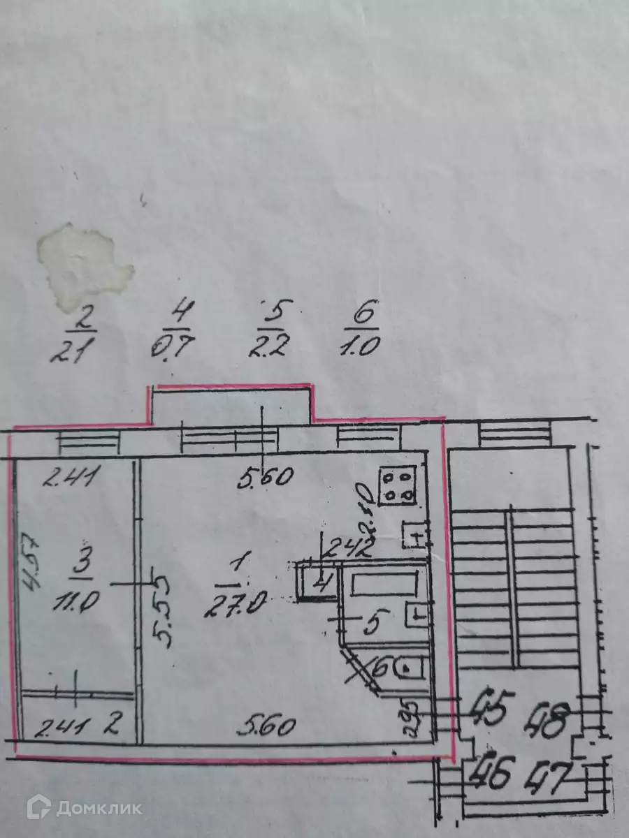 1-комнатная квартира, 44 м2, этаж 2 / 5, на продажу в Санкт-Петербурге, Омская улица, 23