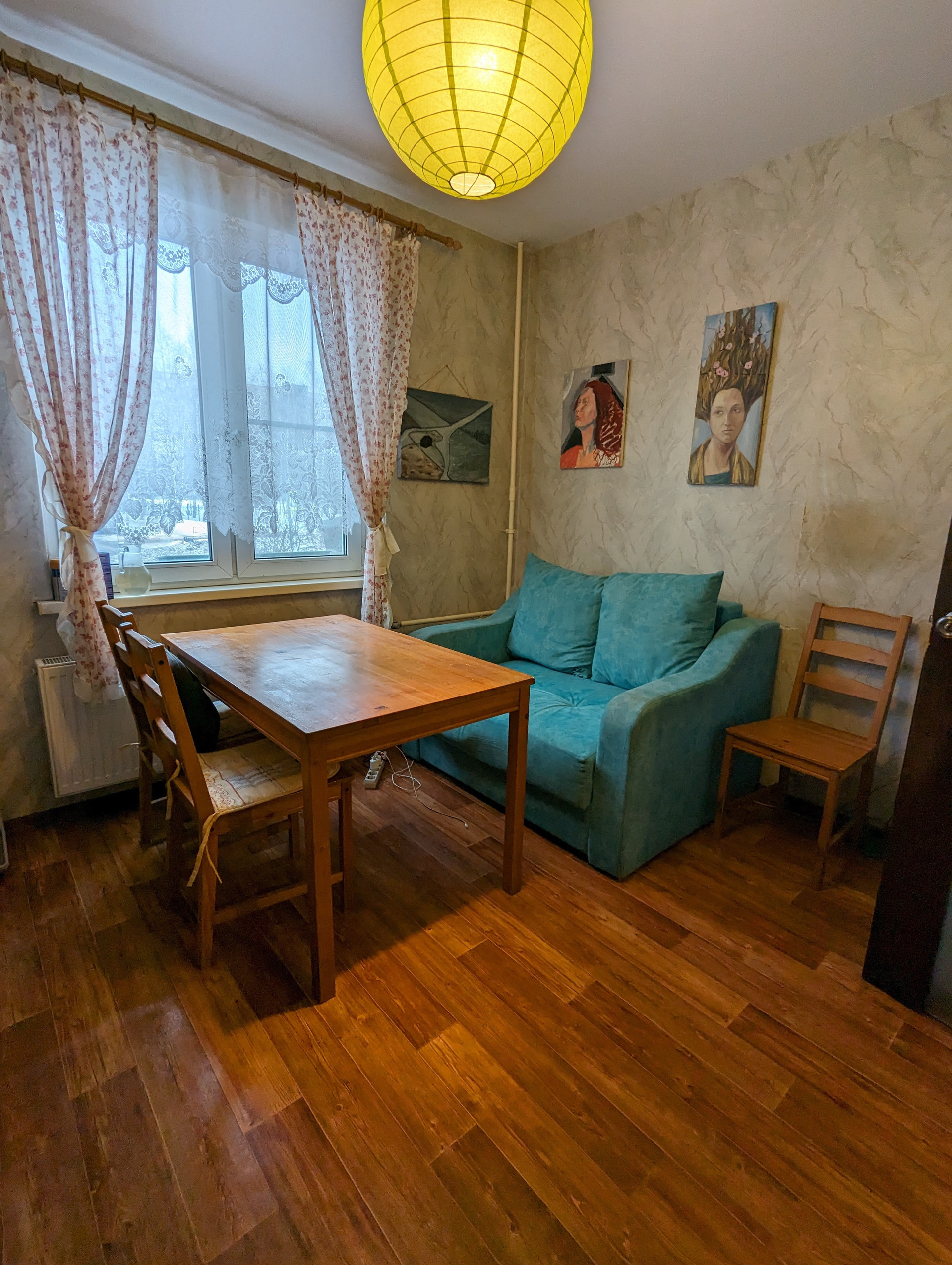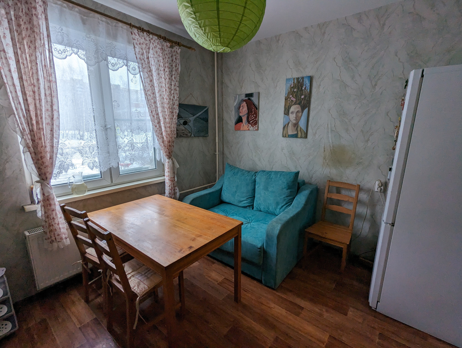 Квартира теплая, окна выходят на тихую, зеленую улицу.